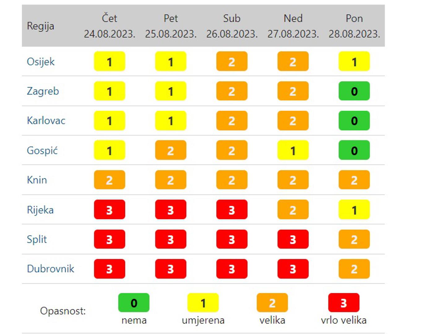Crveni Meteoalarm vrijedi za cijeli Jadran, a u zaleđu narančasti koji označava veliku opasnost od toplinskog vala. U unutrašnjosti je tijekom dana na snazi žuto upozorenje.