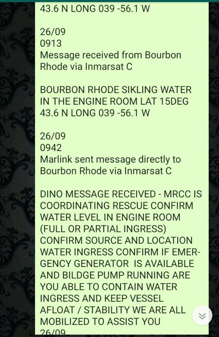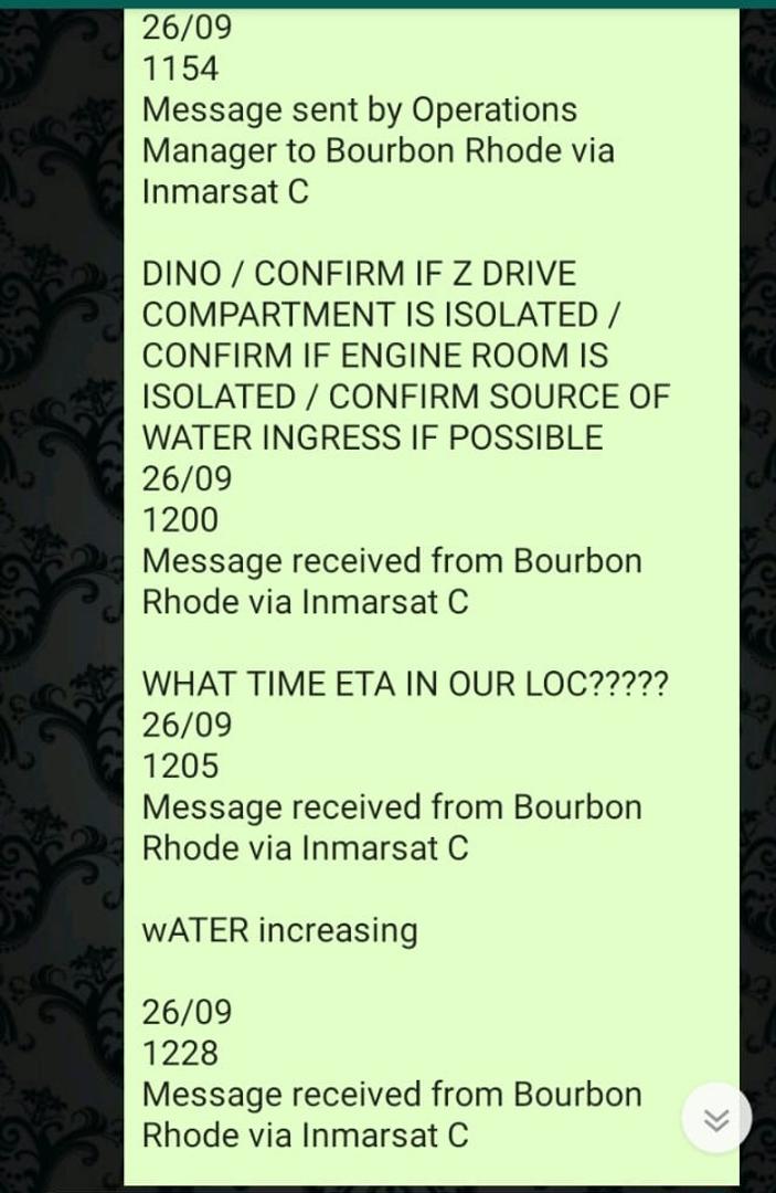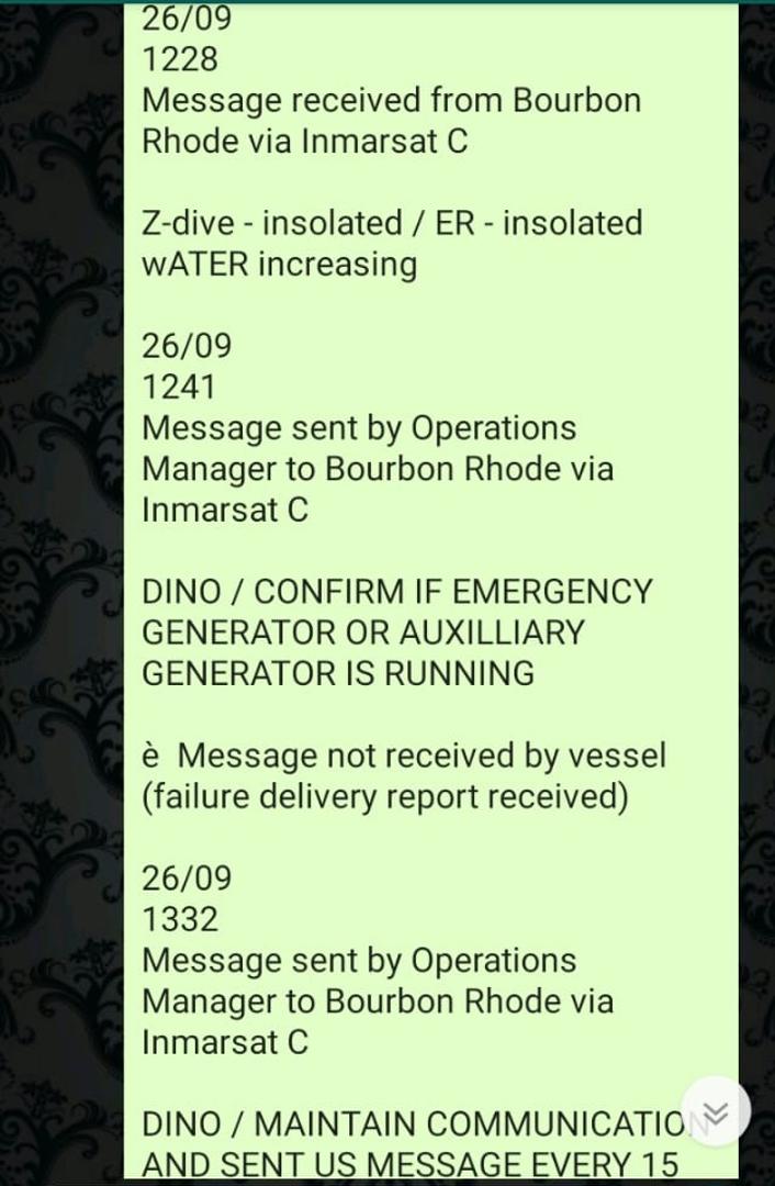 Transkript koji detaljno i dramatično opisuje posljednje sate broda Bourbon Rhode pojavio se u pomorskim krugovima, a redakcijama Dalmacija Danas i Morski.hr dostavio ga je Dinin kolega koji se trenutačno nalazi izvan Europe. Kaže, ne slaže se sa skrivanjem istine i zbog toga je odlučio pustiti u javnost ono što je došlo do njega povjerljivim kanalima.