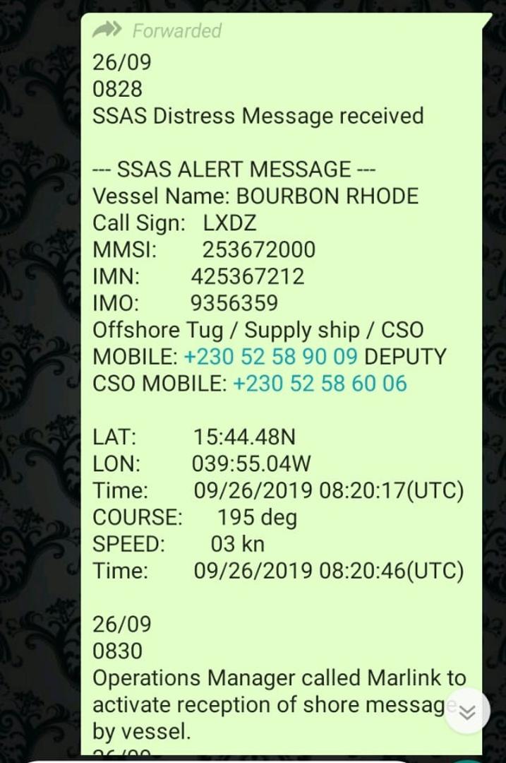 U 11.11 kompanija čiji je SSI EXCELLENT javlja Bourbon Rhodeu da su ga preusmjerili prema distress lokaciji.