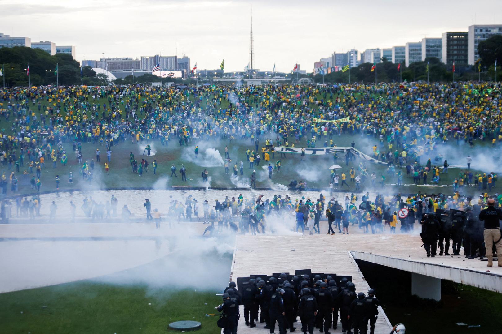 Izgredi tisuća radikala i pristaša krajnje desnog bivšeg predsjednika, koji ne priznaju rezultate izbora iz listopada koji su pokazali da ga je Lula pobijedio za nekoliko postotnih poena, uključivali su tučnjavu s policijom koja nije mogla zadržati tako veliku skupinu ljutitih izgrednika. Videi su pokazivali kako prosvjednici uništavaju imovinu u zgradi Predsjedništva te kako izbijaju požari u Kongresu. Jednom kada su došli unutra, bacali su stolice kroz prozore, a ukradeno je i više predmeta. Policija je vratila kontrolu nad zgradama tijekom večeri. Jučer je Lula održao sjednicu vlade u zgradi Predsjedništva, samo dan nakon što je napadnuta.