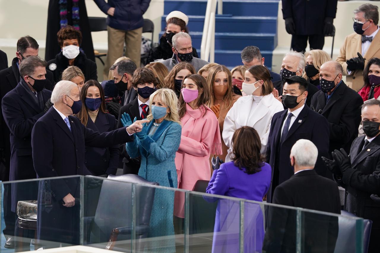 18.30 - Predsjednik Joe Biden i njegova svita napuštaju pozornicu uz fanfare i pritom primaju čestitke.