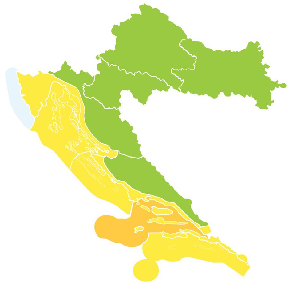 Prema najavama DHMZ-a, vjetar će ovog petka u srednjoj Dalmaciji, na području Splita i okolice, dosegnuti brzinu i do 100 km/h, zbog čega je upaljen narančasti Meteoalarm. Na ostatku Jadrana do kraja dana bit će upaljeno žuto upozorenje jer se očekuju naleti bure do pak 85 km/h, no zato će cijela Hrvatska ove subote biti u ''zelenom''.