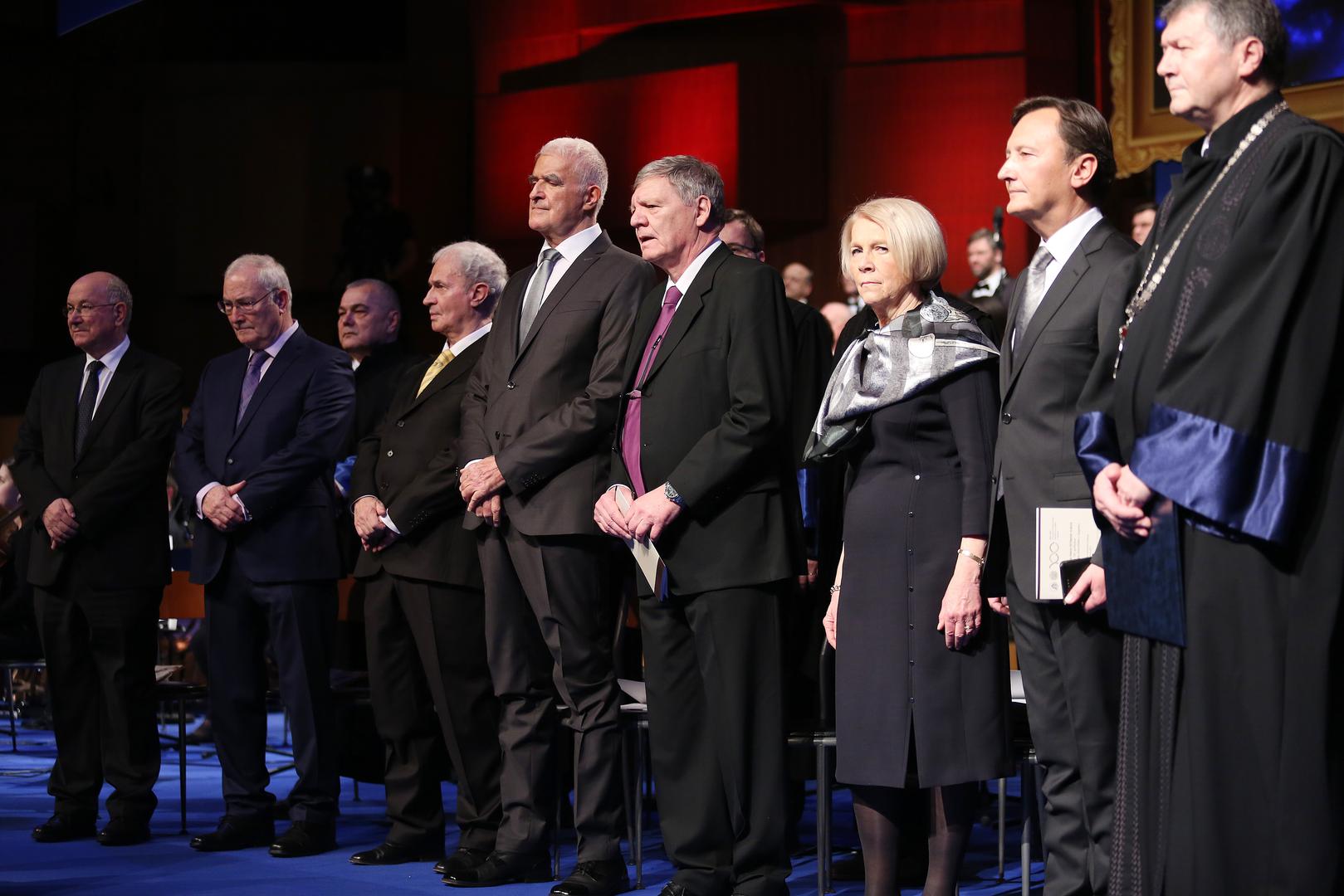 Među nazočnima su bili i predsjednica RH Kolinda Grabar-Kitarović, predsjednik Sabora Gordan Jandroković, zagrebački gradonačelnik Milan Bandić, ravnatelj HAZU-a Zvonko Kusić...