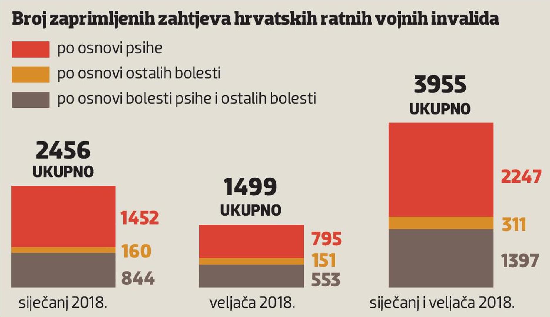 No, ako je suditi prema broju zahtjeva za priznavanje statusa ratnog vojnog invalida čak 23 godine nakon završetka Domovinskog rata, što je jedna od novosti omogućenih temeljem novog zakona, Plenkovićeva Vlada nesmetano nastavlja provoditi ono što je braniteljima i obećala, pod cijenu stvaranja novih korisnika mirovina. Tijekom siječnja i veljače, doznajemo u resornom ministarstvu, podneseno je ukupno 3955 zahtjeva za priznavanje statusa hrvatskog ratnog vojnog invalida iz Domovinskog rata. Najveći broj odnosi se na zahtjeve na temelju psihe, njih 2247, te po osnovi psihe i ostalih bolesti, njih 1397, dok je zahtjeva za status po osnovi ostalih bolesti uputilo njih 311.
