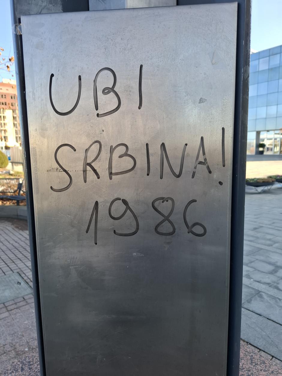 U središtu Vukovara danas je uočen grafit na kojem piše "Ubi Srbina! 1986". Grafit je ispisan na metalu sata koji se nalazi u strogom središtu Vukovara i u neposrednoj blizini zgrade gradske uprave Vukovara. Koliko znamo, postojanje grafita prijavljeno je policiji. Inače, postojanje ovakvih i sličnih grafita prije nekoliko godina u Vukovaru bila je svakodnevica. Zadnjih godina gotovo da ih nije bilo pa se pretpostavlja da su autori takvih grafita odrasli ili otišli iz Vukovara. Međutim, ovaj novi grafit dokaz je da su se pojavili neki novi autori.