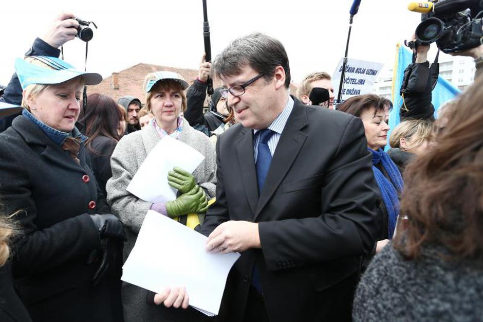 – Napišite tu svoje primjedbe i pošaljite nam – govorio je ministar prosvjednicima. Ljutita predsjednica Sanja Šprem zaskočila ga je gurajući mu u ruke obrasce.