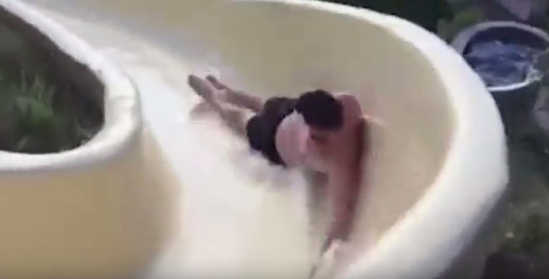 U jednom trenutku, muškarac je na jednom od "zavoja" tobogana izletio, a sve je snimljeno kamerom.