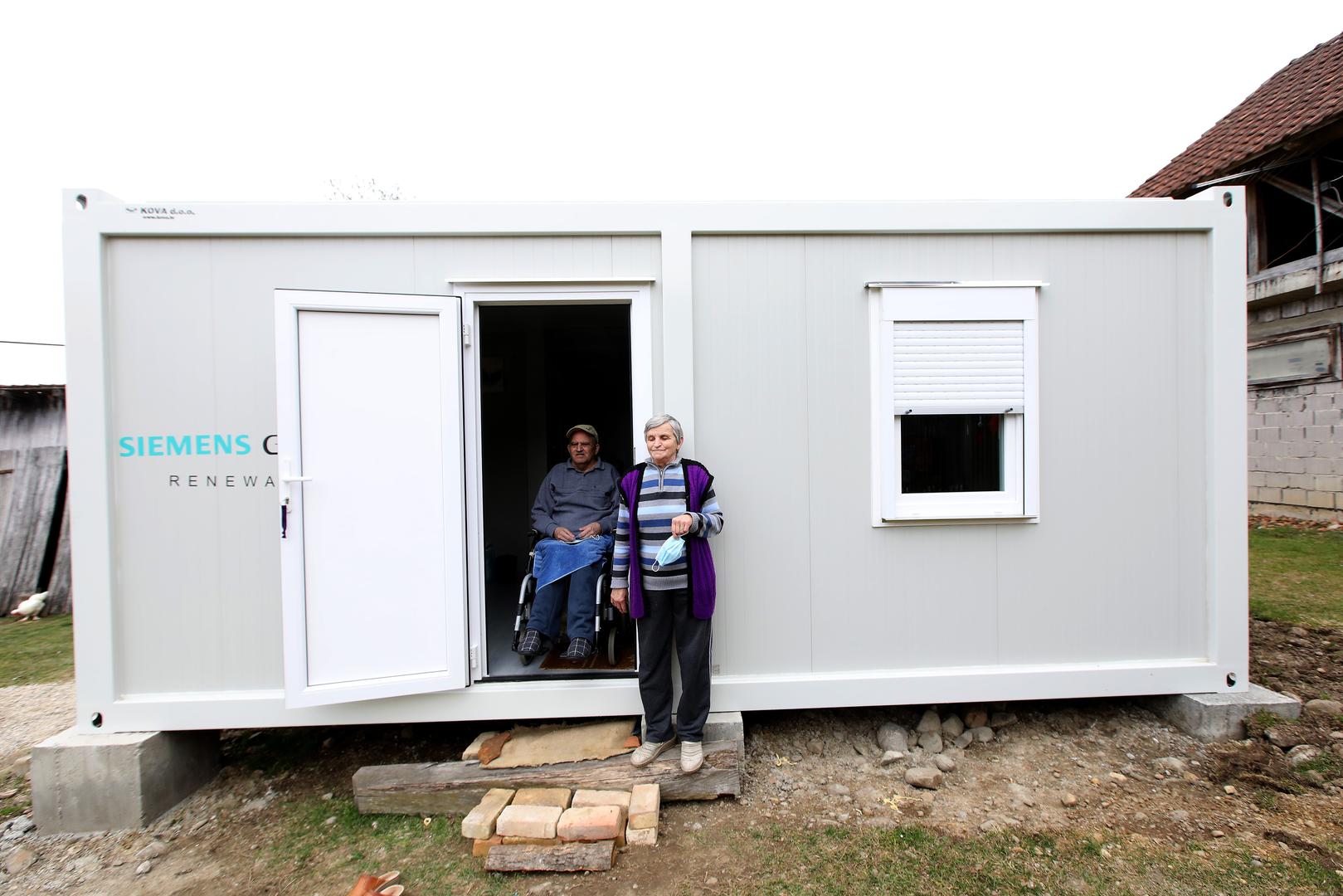 Drvena kuća Mire (67) i Miloša (70) Živkovića u Velikom Gradcu, selu dvadesetak kilometara udaljenom od Gline, nakon potresa dobila je crvenu naljepnicu pa sada ovo dvoje umirovljenika živi u kontejneru. Miloš je paraplegičar, vezan uz invalidska kolica te pomoć i skrb svoje supruge.