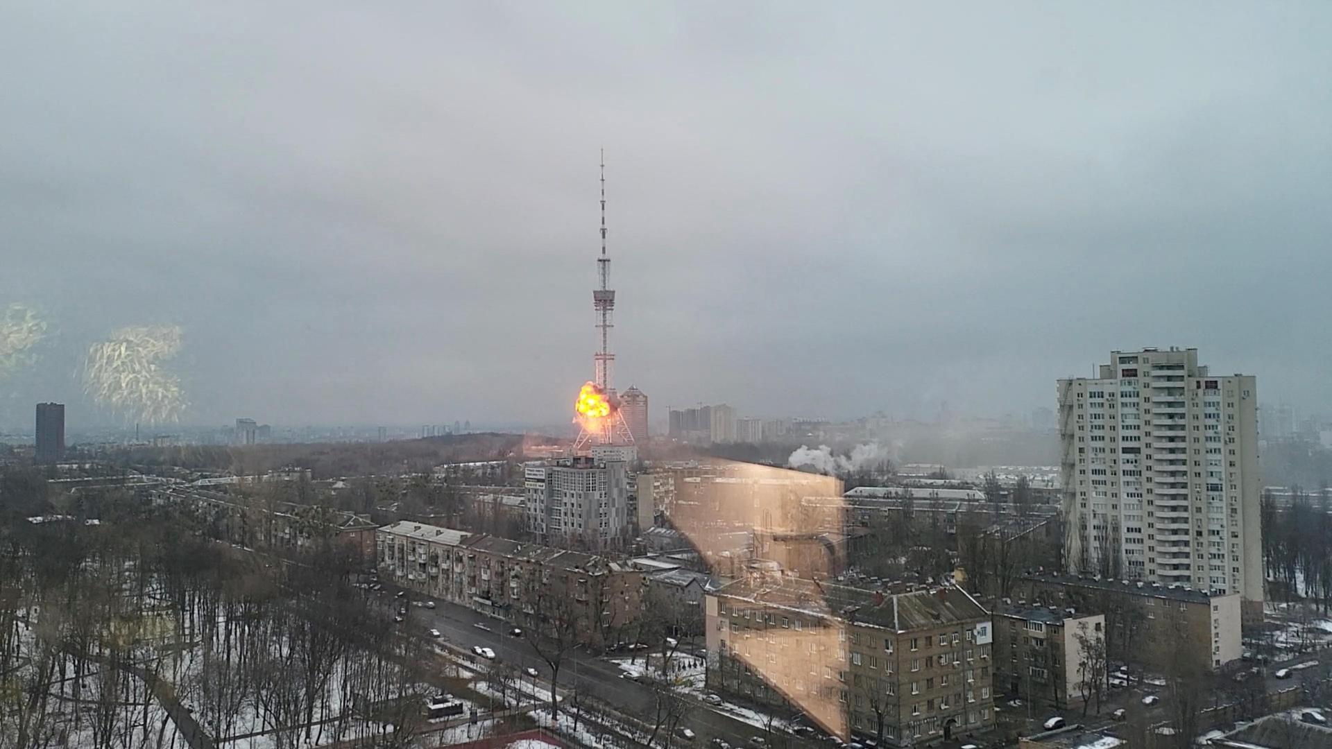 Pogođen je TV toranj u Kijevu, a poginulo pet osoba.