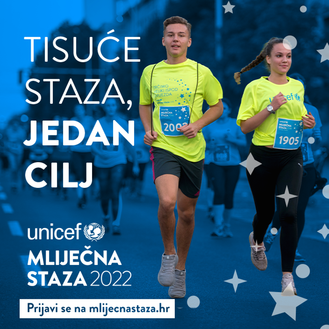 UNICEF-ova humanitarna utrka Mliječna staza 2022. odvijat će se na tisućama staza diljem Hrvatske tijekom 10 dana, od 9. do 18. rujna. Uz pomoć mobilne aplikacije i na događanjima uživo djeca, mladi, obitelji, trkači, udruge, klubovi i svi ostali hodanjem, trčanjem, vožnjom na biciklu, rolanjem ili u kolicima te svojim porukama podrške i donacijama pomoći će podići svijest o važnosti mentalnog zdravlja djece i mladih te podržati poboljšanje brige za mentalno zdravlje djece i mladih u Hrvatskoj.