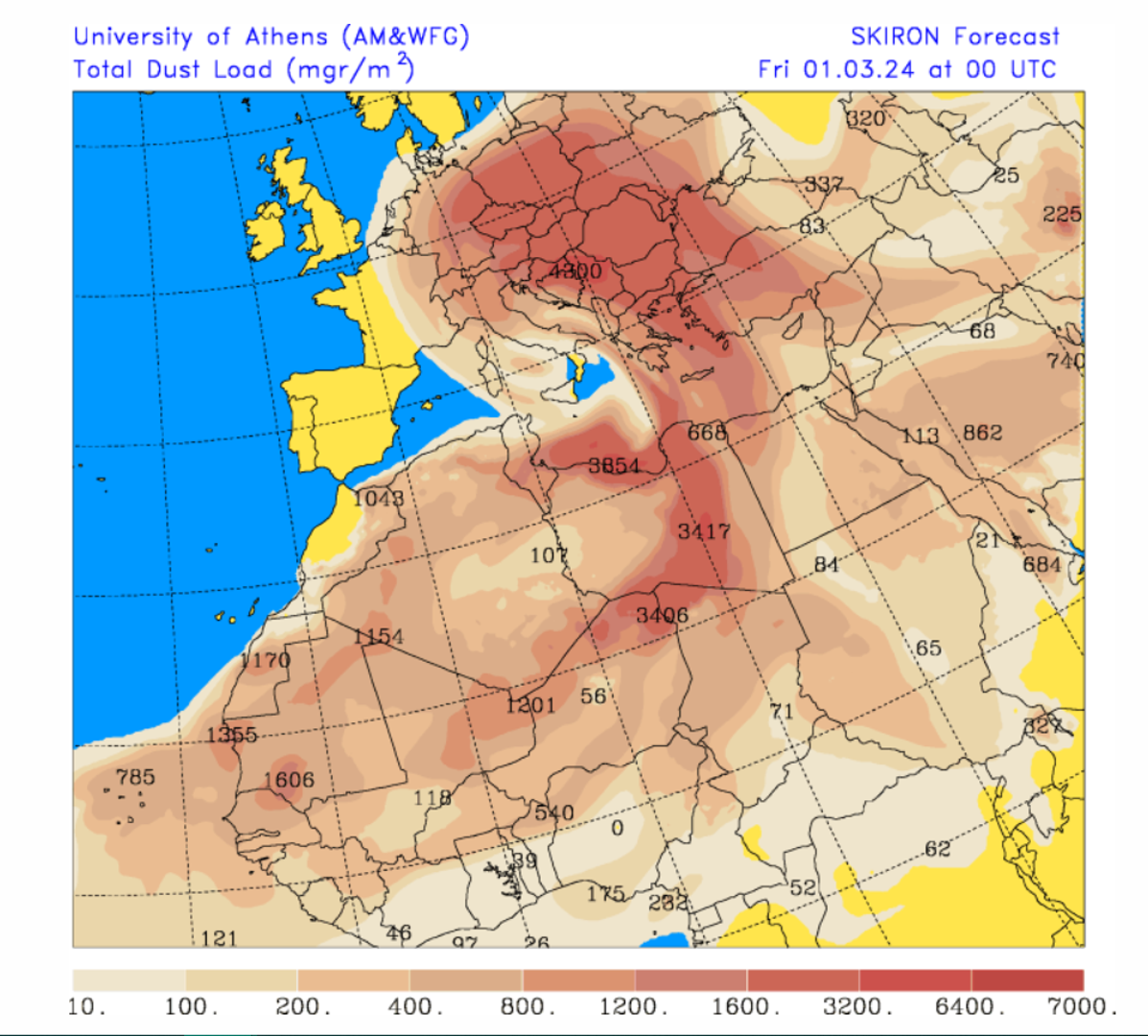 Sveučilište u Ateni objavilo je vremensku prognozu koja uključuje i kretanje pijeska sa sjevera Afrike. Na fotografijama se može vidjeti kako količina pijeska nad Europom raste od nedjelje na dalje. Hrvatska je cijeli tjedan prekrivena smeđim oblakom koji se tek sljedeće nedjelje pomiče na druge dijelove kontinenta.