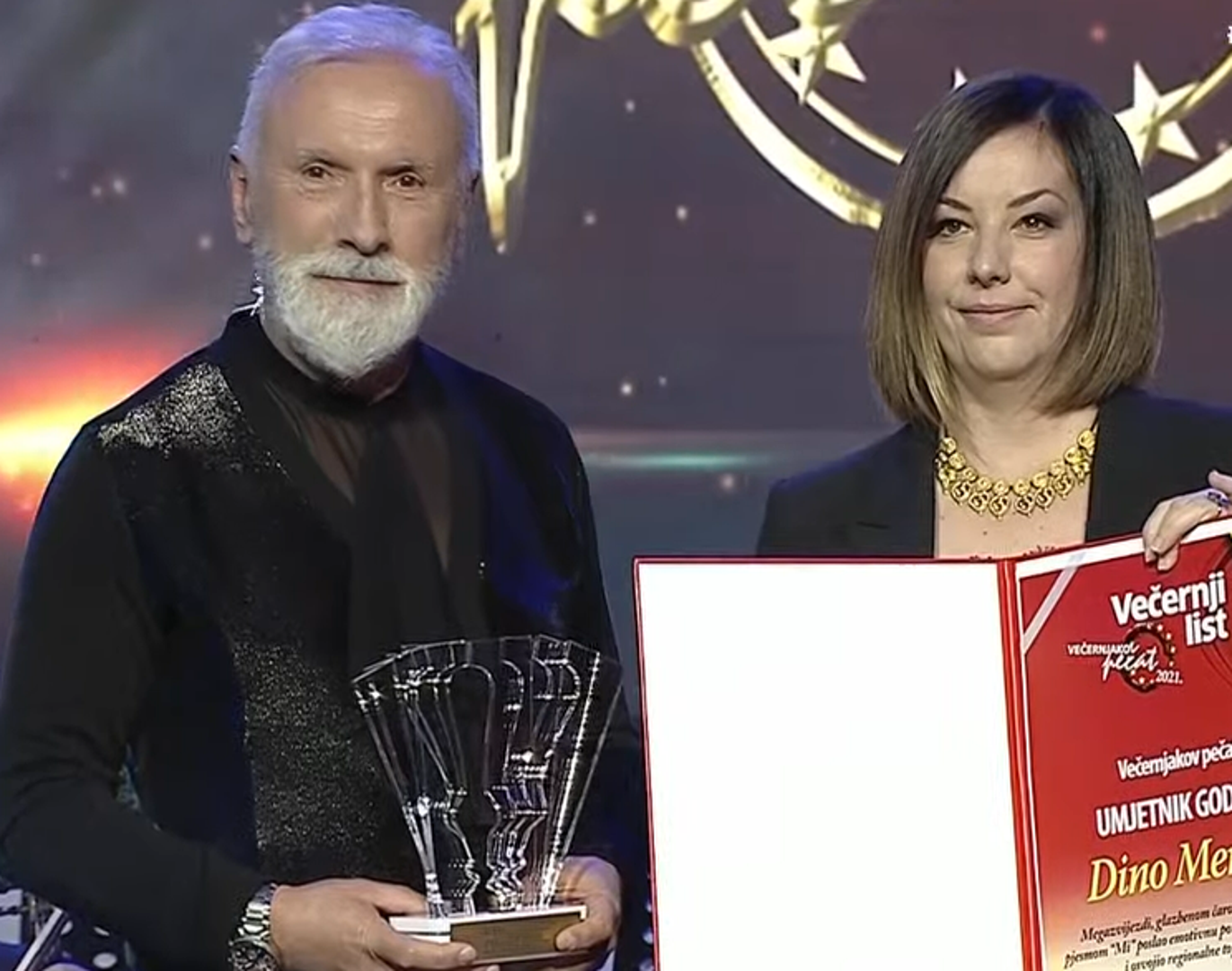 22:07 - Umjetnikom godine proglašen je Dino Merlin. Nagradu mu je predala Amina Mahmutović, predsjednica Uprave UniCredit banke.
