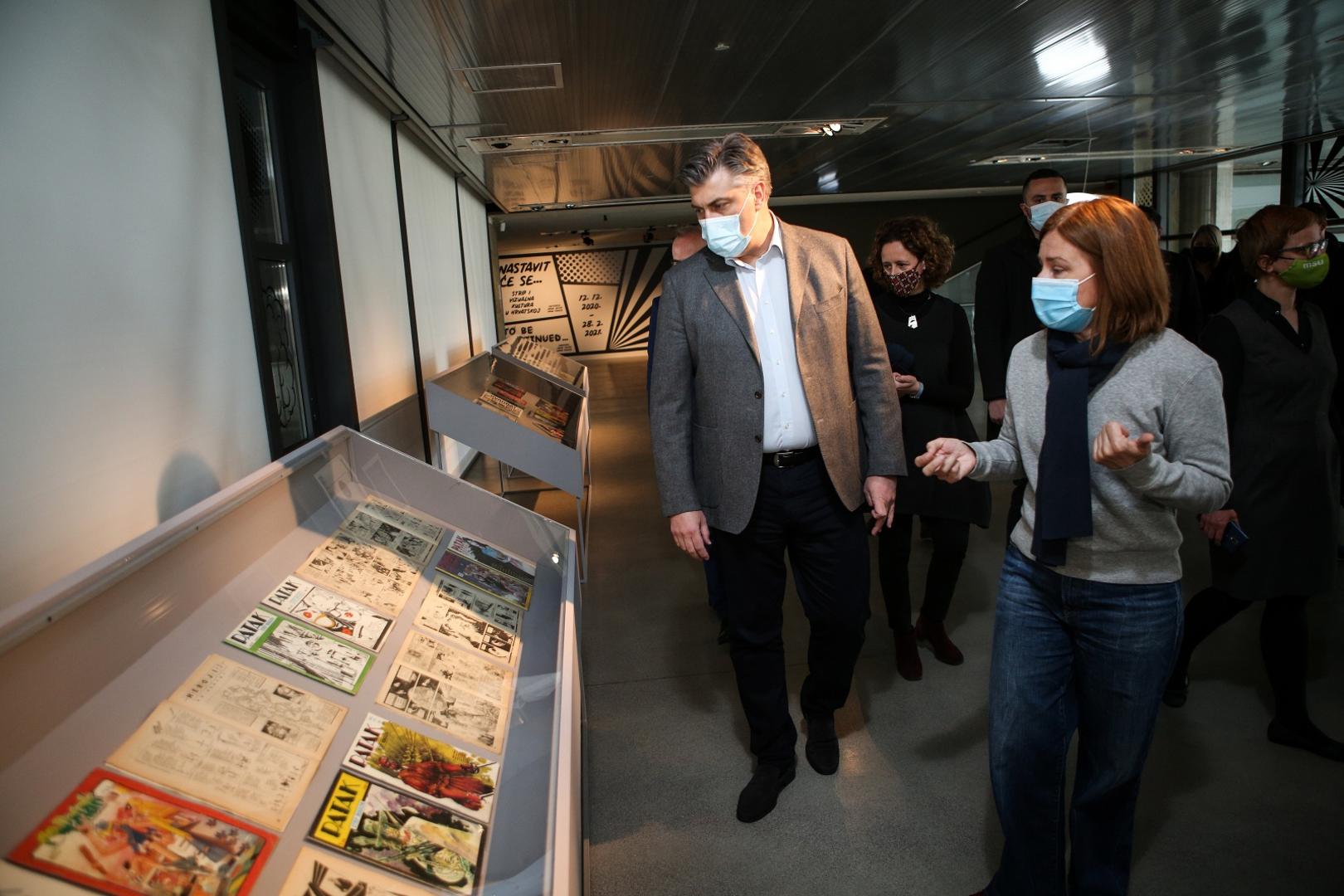 Predsjednik Vlade Andrej Plenković obišao je danas u društvu ministrice kulture Nina Obuljen Koržinek. izložbu "Nastavit će se ...Strip i vizualna kultura u Hrvatskoj" u Muzeju za suvremenu umjetnost (MSU).