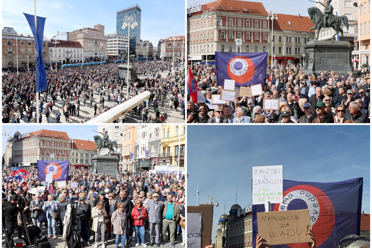 - Umirovljenici prosvjeduju na Trgu bana Josipa Jelačića