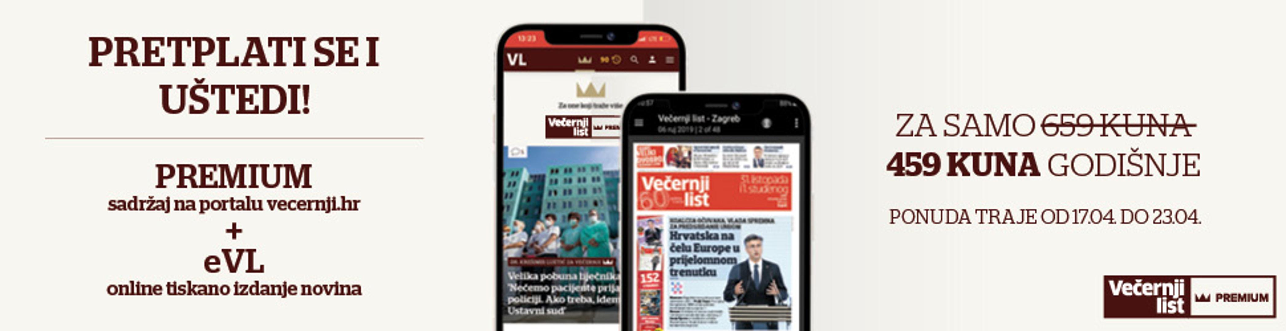 Za ljubitelje online i tiskanog izdanja pripremili smo poseban paket. Odlučili smo spojiti premium koji pruža čitateljima pristup zaključanom sadržaju na našem portalu i e-novine koje prikazuju tiskano izdanje u PDF formatu. Nudimo vam, dakle, i premium i e-novine Večernjeg lista po cijeni od 459 kuna godišnje. To znači da za manje od 1,5 kuna dnevno možete neograničeno čitati sav sadržaj iz novina i s portala Vecernji.hr. Ponudu možete pogledati ovdje: https://www.vecernji.hr/kupipremium