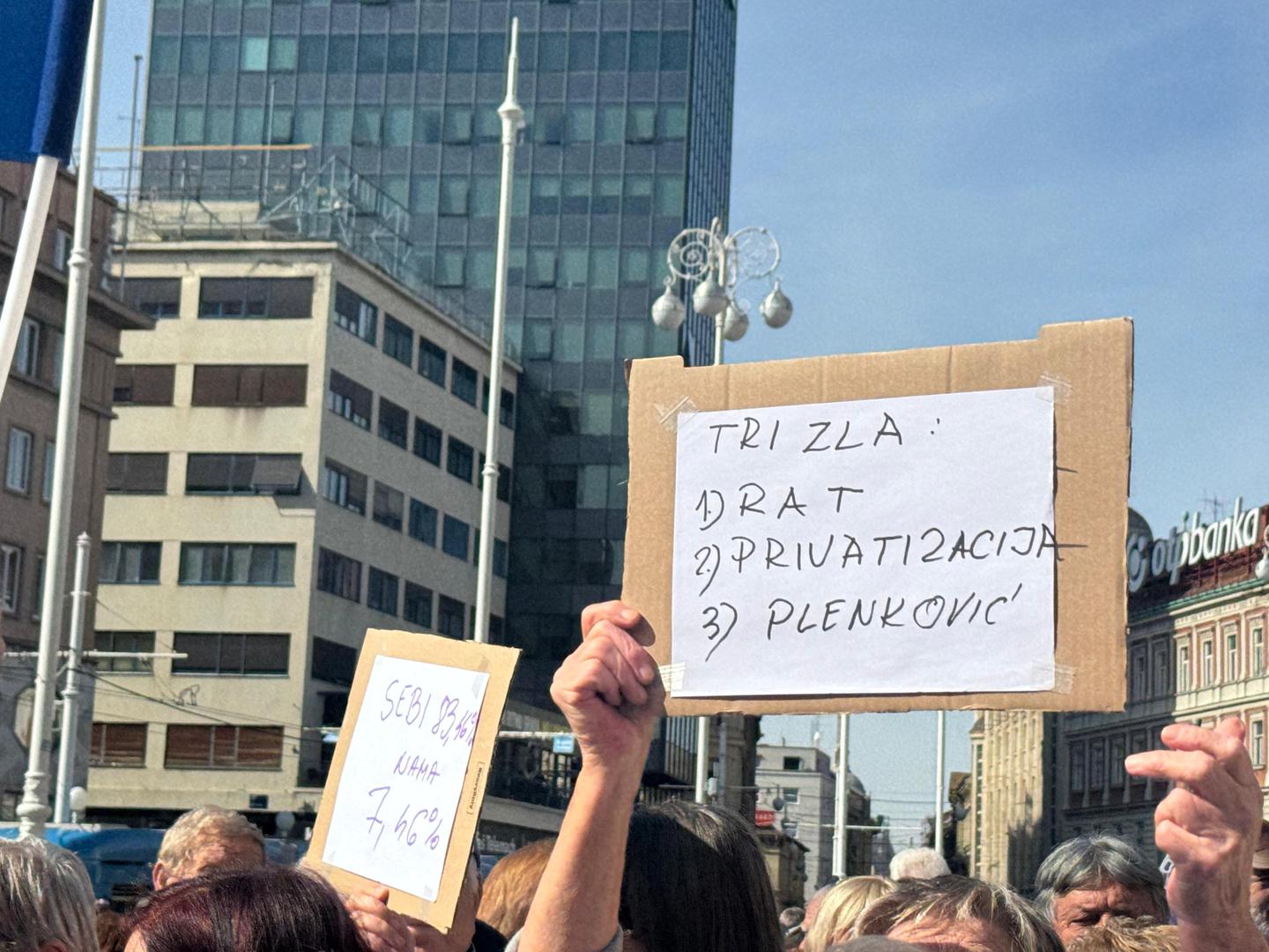 01.10.2024., Zagreb - Na Trgu bana Jelacica odrzan je prosvjed umirovljenika "Protiv siromastva" u organizaciji Bloka umirovljenici zajedno (BUZ). Photo: Patrik Macek/PIXSELL