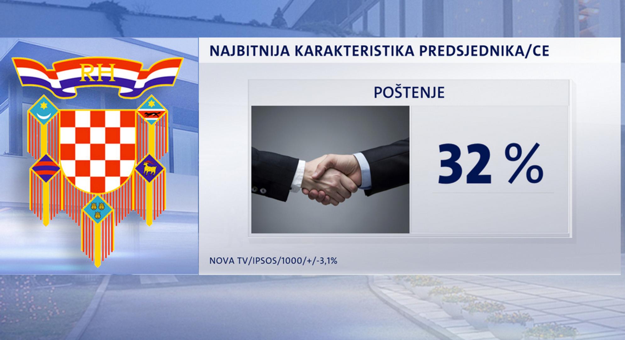 Na prvom je mjestu razumijevanje problema „običnih ljudi, to je važno za njih 38 posto. Zatim poštenje s 32 posto, a obrazovanje je na trećem mjestu s 10 posto, slijedi domoljublje s 9 posto pa neovisnost sa 6 posto te iskustvo s 5 posto.