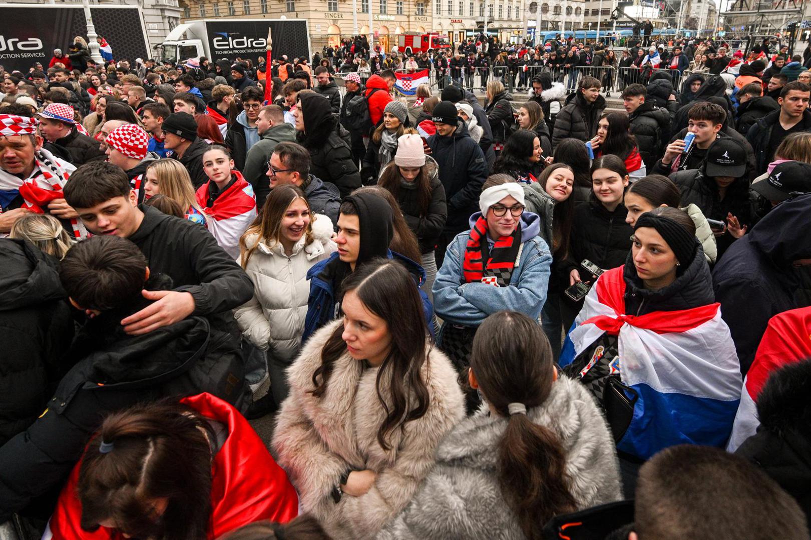 Središnji zagrebački trg punio se navijačima još u ranim popodnevnim satima, uz mnoštvo hrvatskih zastava, a ozračje na trgu zagrijavali su Zaprešić Boysi, Hrvatske ruže i Marko Perković Thompson.