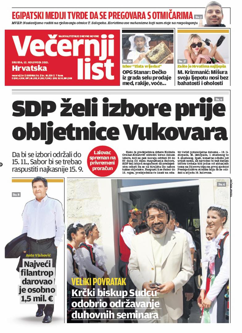 Iz Večernjeg lista od srijede izdvajamo i ove teme: