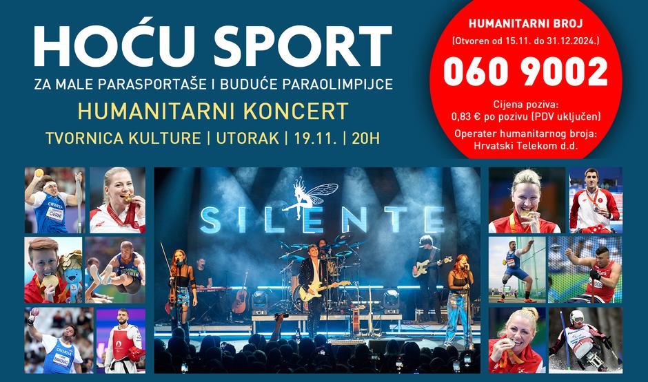 U organizaciji Zaklade Paraolimpijac u utorak 19. studenoga u 20 sati u Tvornici kulture u Zagrebu zasvirat će grupa Silente. Bit će to jedan od događaja kojim se obilježava 60 godina parasporta u Hrvatskoj ali i s ciljem pružanja podrške i boljih uvjeta za bavljenje sportom djeci s teškoćama u razvoju i osobama s invaliditetom. Koncert je humanitarnog karaktera, svojih su se honorara odrekli i Silente i Tvornica kulture kao i Hrvatski telekom koji pruža tehničku podršku, omogućit će telefonski broj na koji će se moći javljati svi koji žele pomoći ovu humanitarnu akciju a pod egidom Hoću sport. Sav prihod od prodaje ulaznica bit će namijenjen osiguranju boljih uvjeta za bavljenje sportom, djeci s teškoćama u razvoju i osobama s invaliditetom, ostvarenju što boljih rezultata i podršci za sudjelovanje na natjecanjima. Razlozi za organizaciju ovakvih događaja ne samo za ovaj veliki jubilej, jasni su. Parasportaši pa i paraolimpijci često nemaju materijalnu podršku pa nerijetko sami uz pomoć trenera, klubova, prijatelja i obitelji nastoje postići svoje sportske ciljeve. Jedan od glavnih organizatora ovog koncerta i ove vrijedne akcije je poznati naš redatelj i glumac Dejan Aćimović.