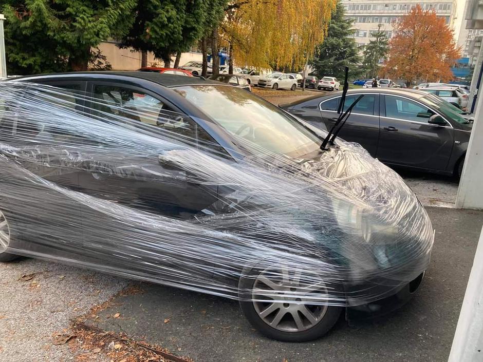 Nepoznatu osobu koja je ignorirala upozorenje o zabrani te nepropisno parkirala ispred jednog od ulaza na Velesajmu dočekalo je neugodno iznenađenje. Naime, radnici koji su zatekli vozilo na vozačevu nekulturu odgovorili su tako što su mu automobil zamotali u prozirnu foliju.
