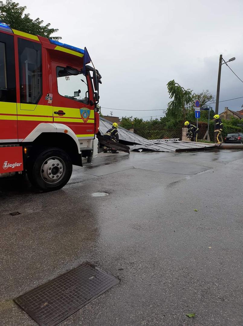 17:20 - Snažan vjetar otkinuo je krov sa zgrade u Klanječkoj ulici u Zagrebu.