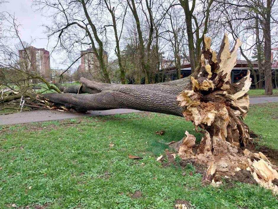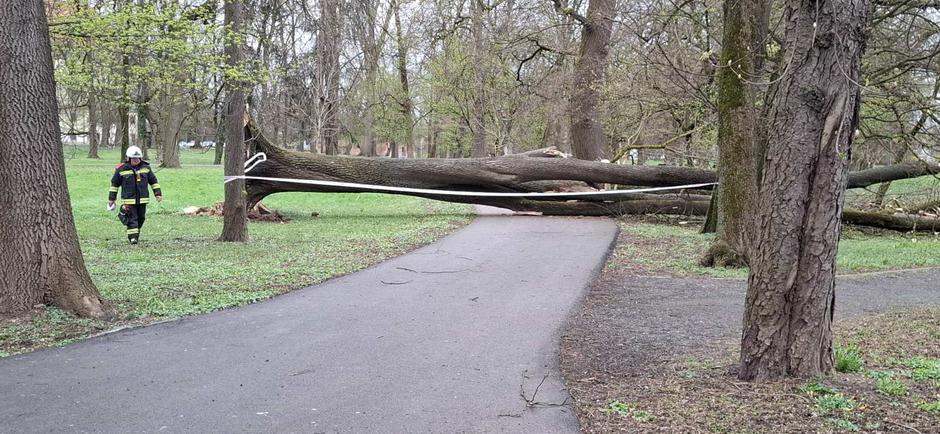 17:22 - Olujni vjetar koji je danas zahvatio područje Čakovca u poslijepodnevnim satima prouzročio je rušenje stabla u Perivoju Zrinskih. Palo je na klupicu. Srećom, u trenutku pada stabla na tom se mjestu nisu nalazili građani te nije bilo ozlijeđenih osoba. Na teren su odmah izašli vatrogasci Javne vatrogasne postrojbe Čakovec te djelatnici Gradskog komunalnog poduzeća Čakom, koji su poduzeli nužne mjere kako bi se osigurala sigurnost prolaznika. Nakon orezivanja i uklanjanja dijela krošnje srušenog stabla, područje je privremeno ograđeno. Zbog i dalje izraženih nepovoljnih vremenskih uvjeta i jakog vjetra, potpuno uklanjanje stabla planirano je tijekom sutrašnjeg dana, kada će se radovi moći obaviti na siguran način. Nadležne službe dodatno apeliraju na građane da izbjegavaju kretanje Perivojem Zrinskih dok traju nepovoljni vremenski uvjeti te da budu posebno oprezni prilikom boravka na otvorenom.