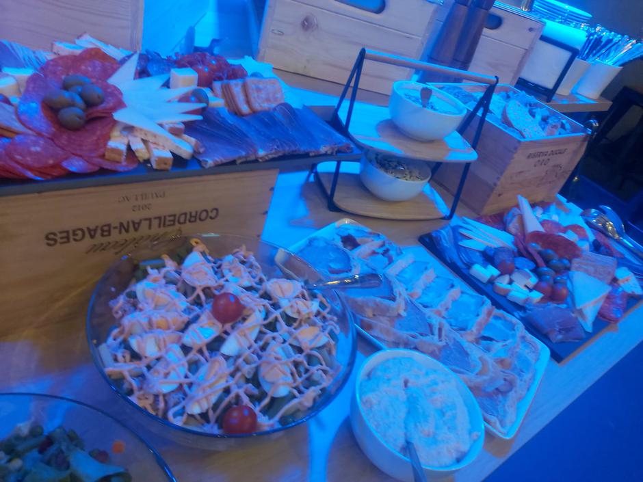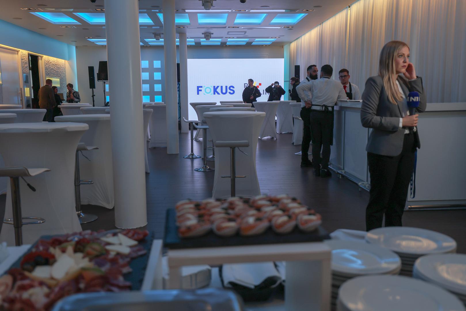U stožeru stranke Fokus, u zagrebačkom Matis Lounge Baru atmosfera je nešto opuštenija. Dominiraju hladni naresci, finger food, kako slani tako i slatki.