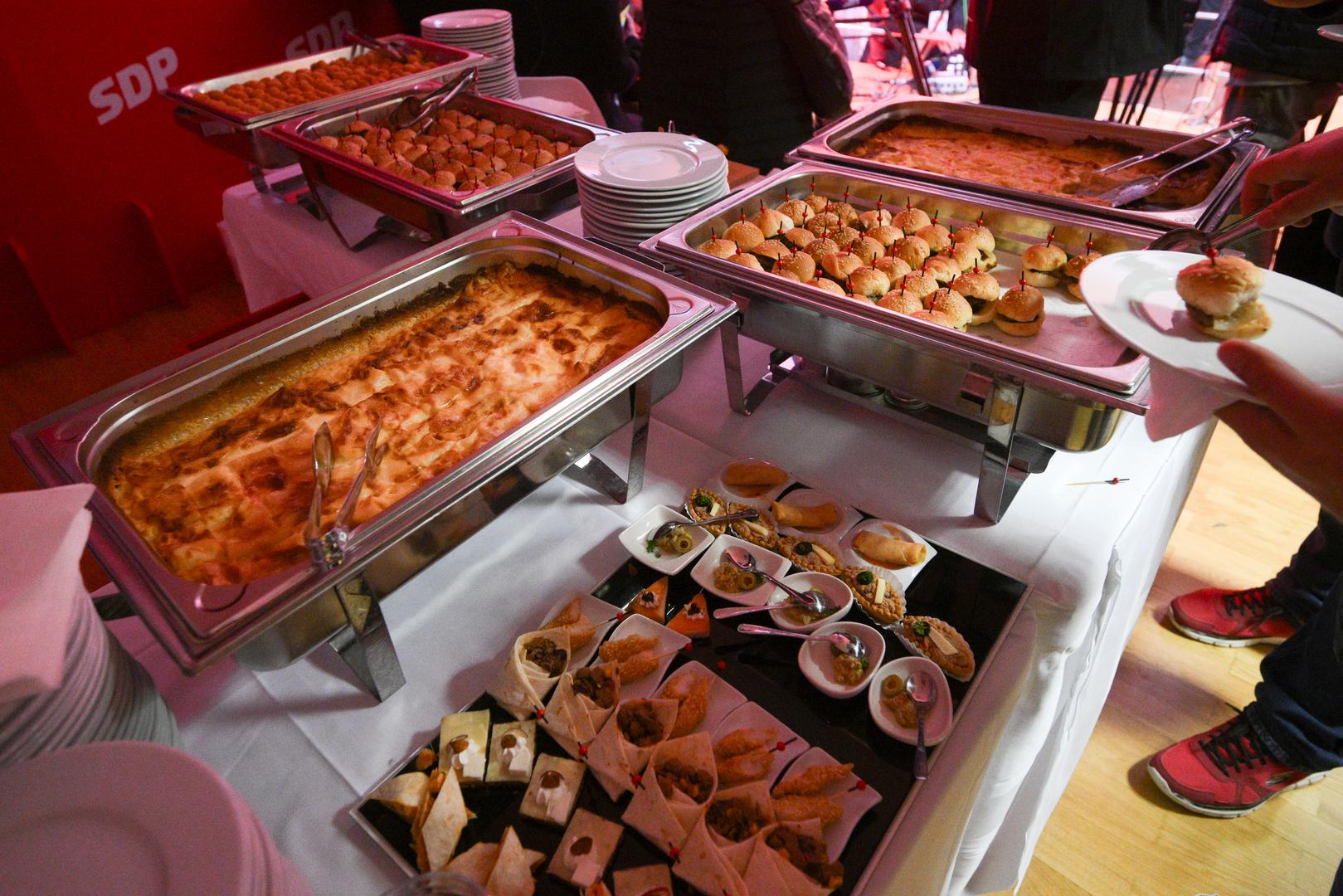 Stožer Mosta u zagrebačkom Peronu 16, u Magazinskoj ulici te stožer Domovinskog pokreta također su se bazirali na hladnim jelima, no ne treba sumnjati u to da će, kako izborna noć bude išla dalje, na sceni biti i nešto konkretnija ponuda. U Mostu od hrane lazanje, pastrva s blitvom i krumpirom, njoke u mesnom umaku, pečeni krumpir, kotleti u umaku i rižoto