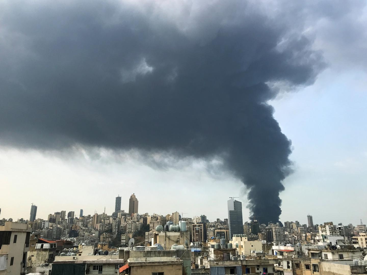 A fire at #Beirut port sends up a large column of black smoke into the sky over the Lebanese capital a little more than a month since a massive blast devastated the port facilities and surrounding area.https://t.co/SpbNrUfVw9 pic.twitter.com/C4axr0cZhd