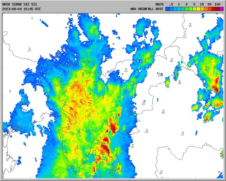 9:37 – Arso je izdao crveno upozorenje za sjeveroistočnu, sjeverozapadnu i središnju Sloveniju. Gradaščica i Poljanska Sora već poplavljuju u većem obimu, najgore je na istoku zemlje. Sirene su se oglasile u Celju. Na području općine Kamnik proglašena je opća opasnost. Sve slobodne jedinice su na terenu.