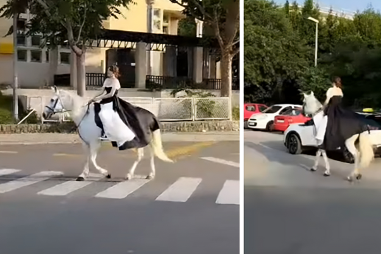 Maturantica Umjetničke škole u Splitu na maturalnu zabavu stigla je na konju. Djevojka je za maturalnu zabavu odjenula i upečatljivu haljinu, a njezin impresivan dolazak pred ugostiteljski objekt gdje se održavala proslava snimljen je i masovno se dijeli društvenim mrežama.