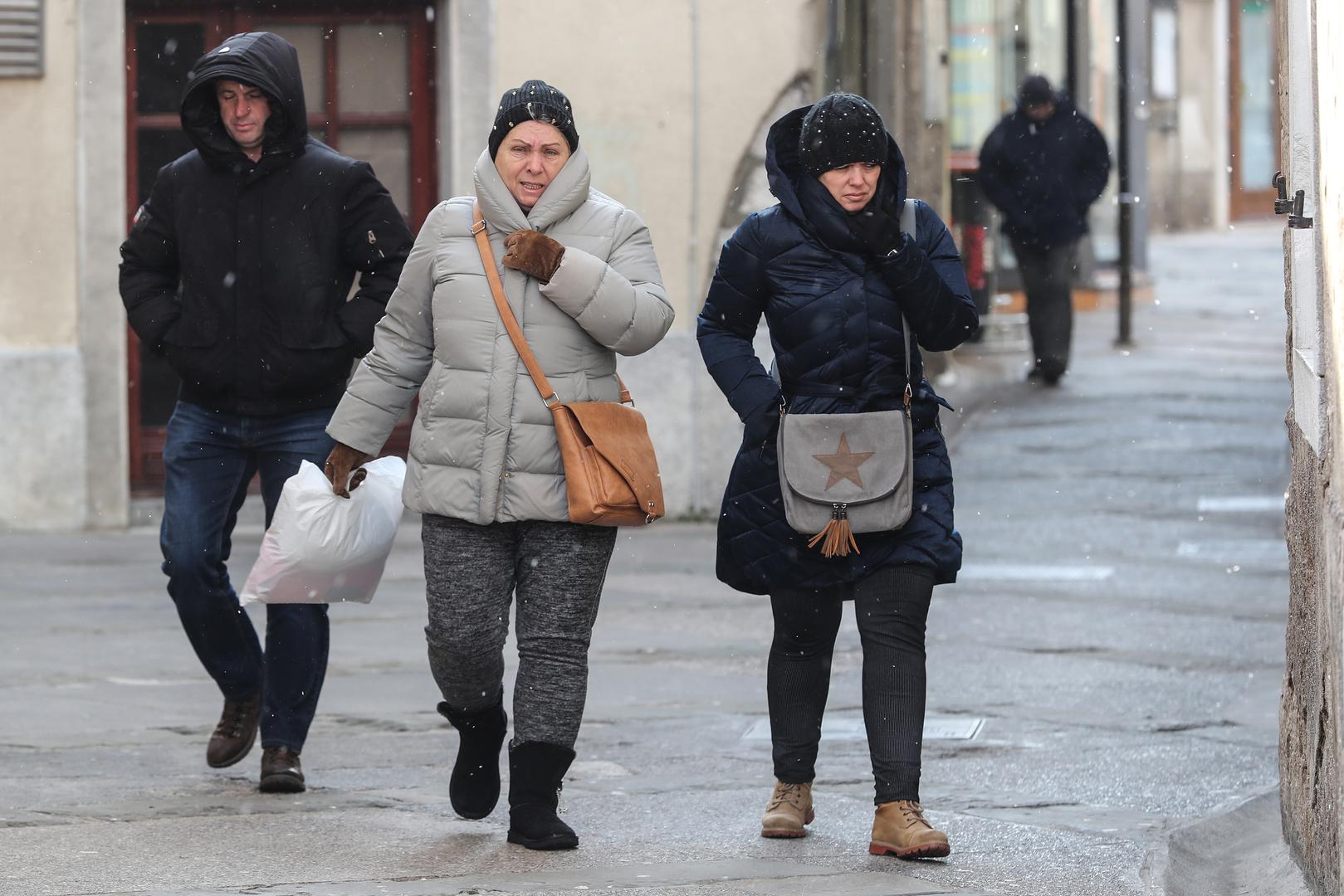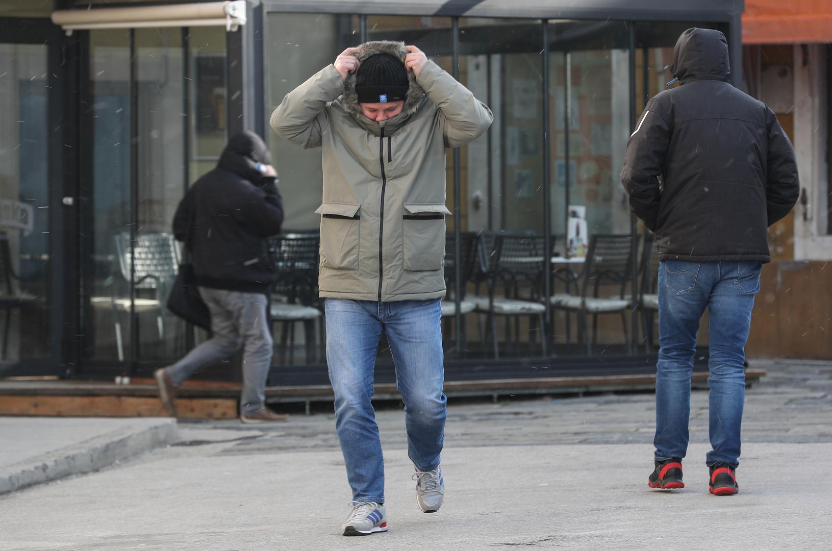 Malobrojni građani koji su izašli na ulice nastojali su se oduprijeti nevremenu odjeveni u toplu odjeću od glave do pete.