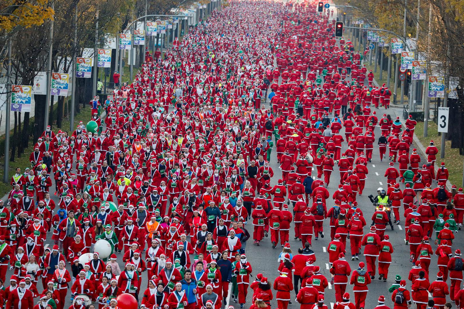 Više od 7000 ljudi prerušenih u Djedove Božićnjake trčalo je kroz središte Madrida u nedjelju u humanitarnoj utrci kojom se prikuplja novac za liječenje od raka.