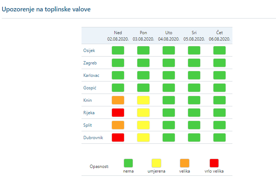 Za vrijeme trajanja velikih vrućina treba se pridržavati savjeta zdravstvenih ustanova.
