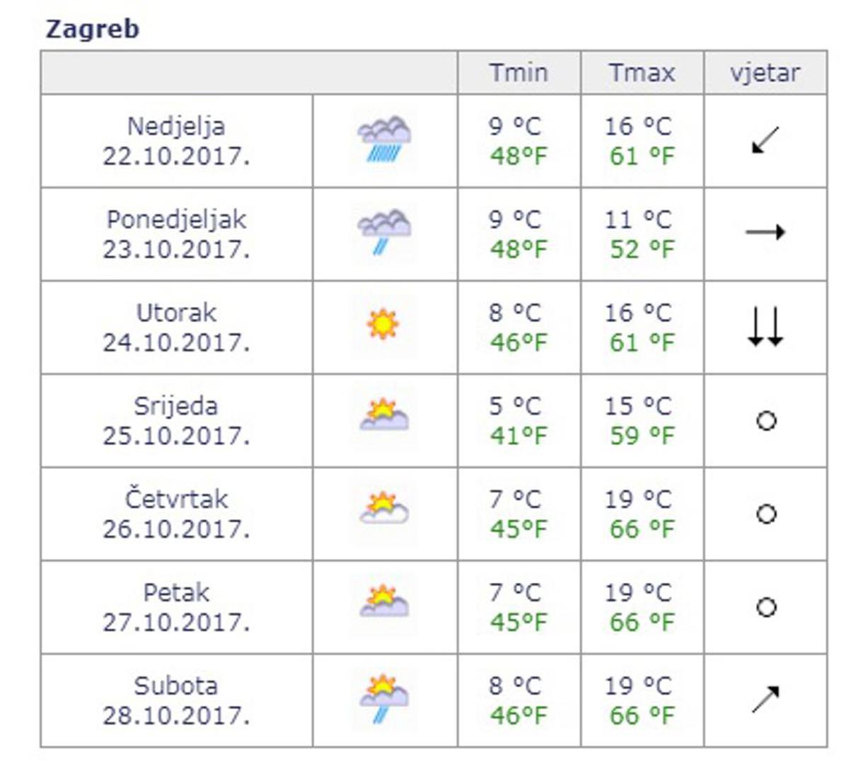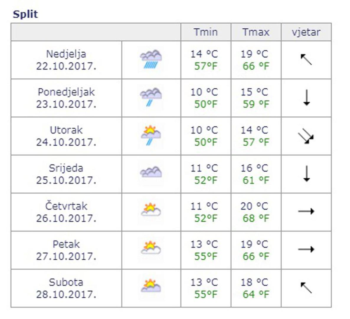 Umjereno i pretežno oblačno s povremenom kišom očekuje nas i sutra u većem dijelu zemlje. U noći i ujutro ponajprije u istočnim i južnim predjelima može biti obilnije kiše, a u najvišem gorju susnježice i snijega. Vjetar većinom umjeren sjeveroistočni i sjeverni.