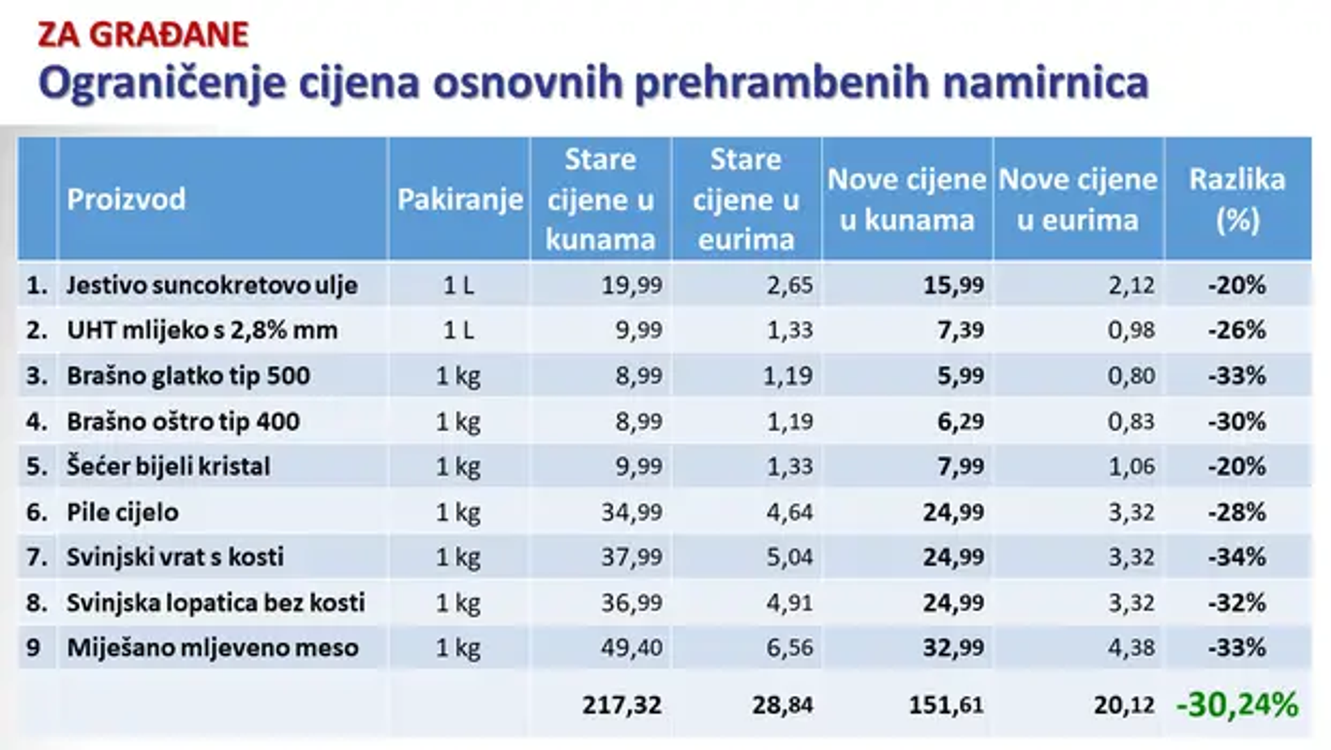 Osnovne prehrambene namirnice čija se cijena ograničava. #sjednicaVRH