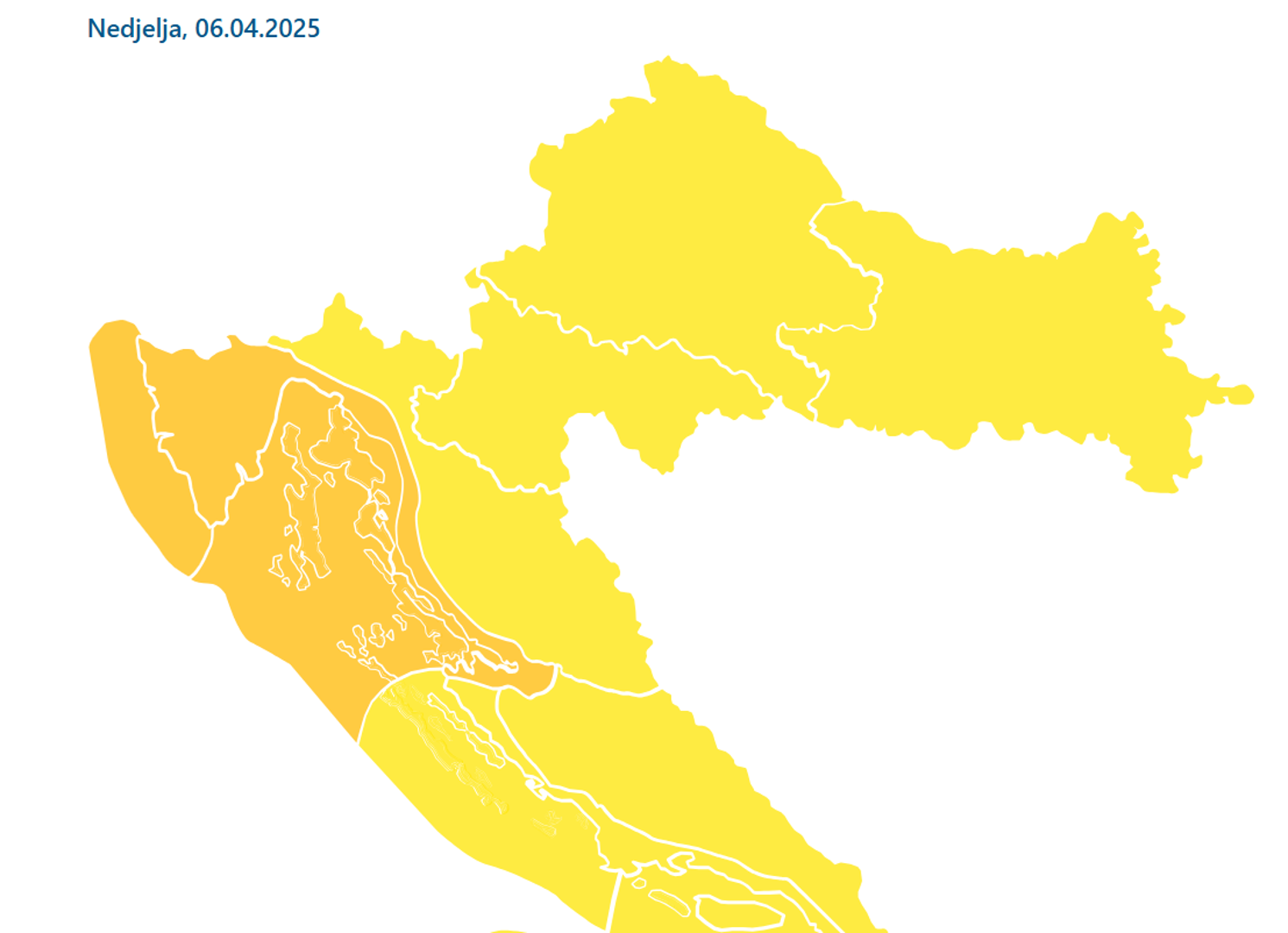 Za nedjelju je izdan meteoalarm za cijeli Hrvatsku.
