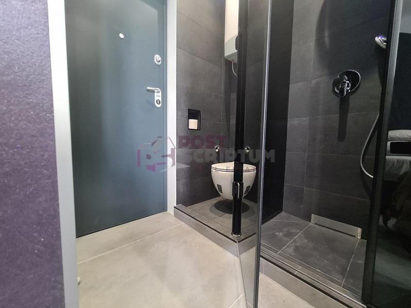 Ova garsonijera, kako se navodi u oglasu, moderna je i novouređena, a sastoji se od jedne prostorije u kojoj se nalazi dio za spavanje, kuhinja, tuš kabina te WC.