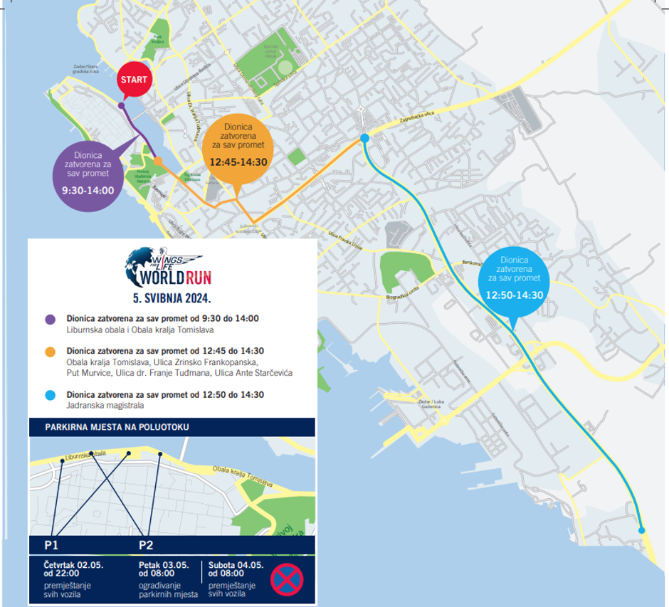 Zadarski dio utrke startat će s Liburnske obale točno u 13 sati te će tog dana, u nedjelju, 5. svibnja, vrijediti posebna regulacija prometa: