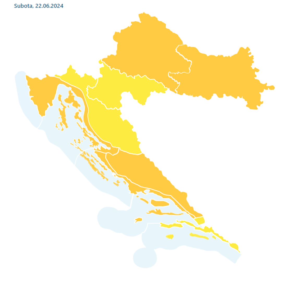DHMZ je izdao niz upozorenja. Narančasto upozorenje zbog iznimno visokih temperatura izdano je za osječku, zagrebačku, riječku, splitsku i kninsku regiju. "Budite spremni na pojavu zdravstvenog rizika zbog vrućine kod osjetljive populacije, ponajprije starijih i male djece. Slušajte savjete nadležnih službi", stoji u upozorenju. Žuto upozorenje zbog toplinskog vala izdano je za dubrovačku, gospićku i karlovačku regiju.