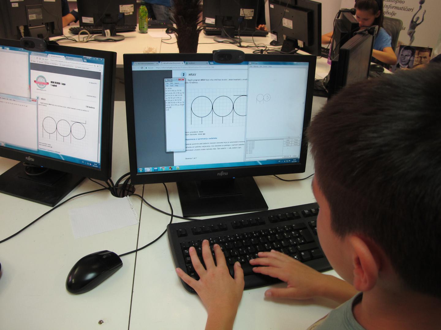Rješavali su dva kola i dva puta po četiri zadatka, a svaki ogled trajao je šezdeset minuta. Između ogleda bila je stanka za čokoladicu i sokić uz gledanje rezultata na zidnim ekranima. Ljestvice poretka tvore se uvijek po razredima, s tim da postoji i ukupna bodovna ljestvica za sve razrede. I ovaj put je među natjecateljima bilo i djevojčica, četiri mlade programerke - Leona, Nika, Ema i Iris.