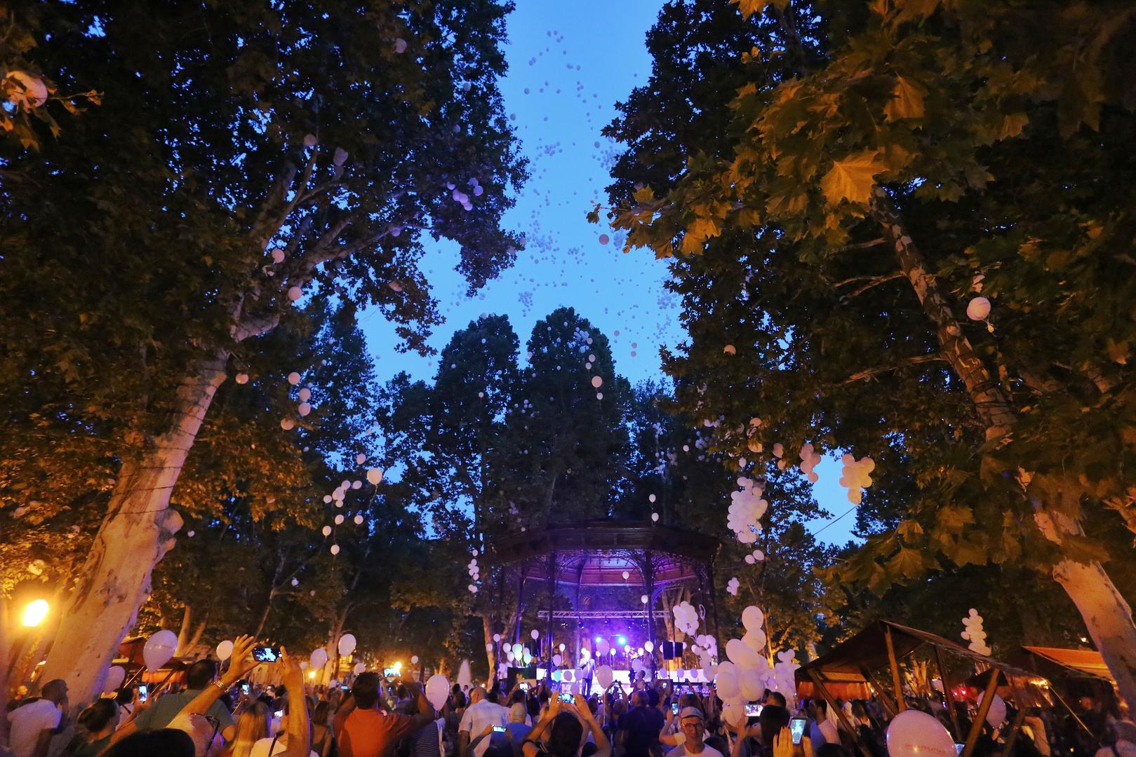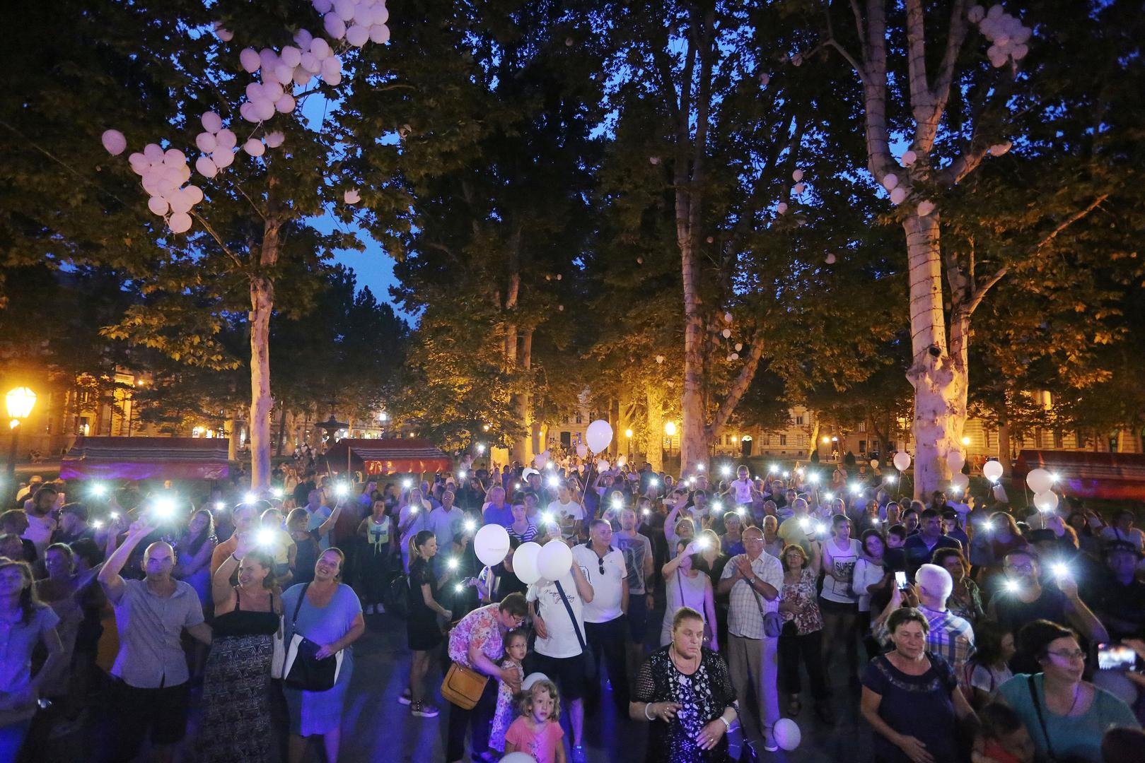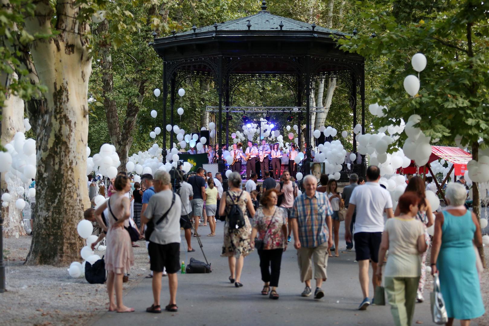 Na Zrinjevcu se okupio veliki broj građana, a nebo je bilo puno balona.