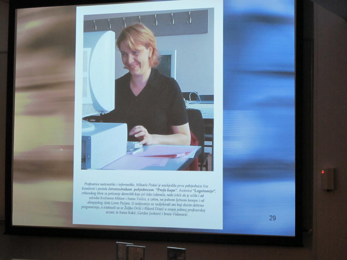 Ovaj kompliment zapravo su dobili najbolji mladi programeri u državi koji su se na ovo predavanje, zajedno s roditeljima, došli podružiti sa svojim savezom. Imati u predavaonici Anamariju Kalinovčić, majku prvog olimpijskog zlata Luke ili Franju Kičića, oca najboljeg osnovnoškolskog natjecatelja u povijesti s devet uzastopno osvojenih prvih mjesta, kasnije i zlatnog olimpijca Ivice Kičića, studenta Fizike na PMF-u, velika je privilegija.