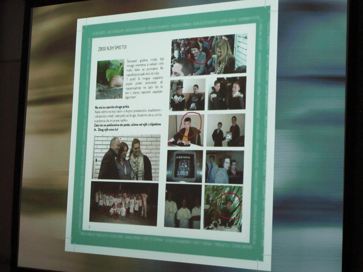 Na predavanju su bile i udružene snage obitelji Fistrić i Miljak. Dominik Fistrić je višestruki državni pobjednik, a prije toga i četverostruki pobjednik male programerske olimpijade za učenike razredne nastave. Njegovim stopama krenuo je kao učenik prvog razreda Lovro Kristijan Miljak (prvi red u sredini), i već upisao svoju prvu pobjedu. U zadnjem redu je sjedio i dvometraš Vedran Kurdija, koji je 2009., kao učenik 4. razreda bio "metar kraći", ali i najbolji natjecatelj s jednim prvim i jednim trećim mjestom.