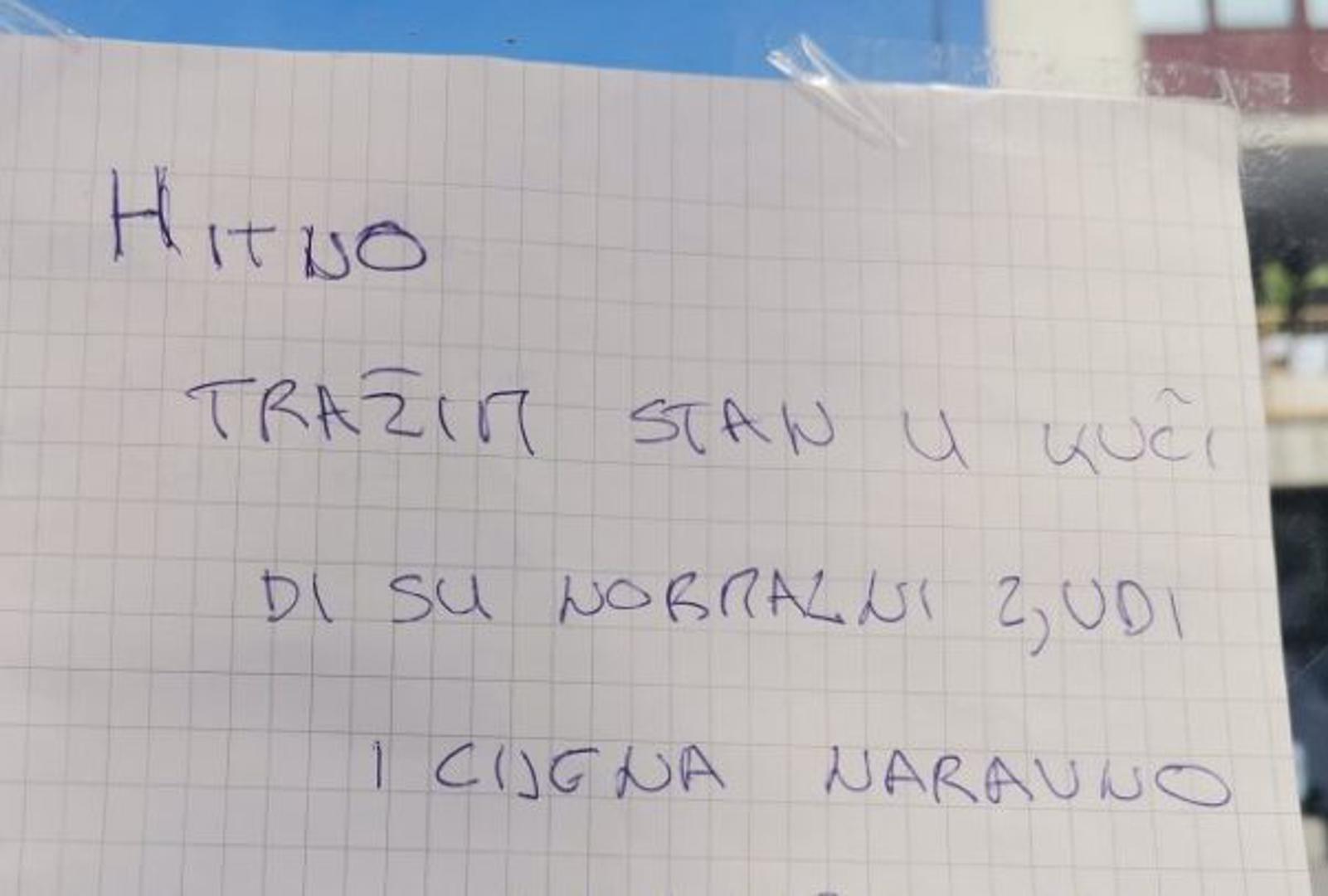 "Hitno tražim stan u kući gdje su normalni ljudi i cijena naravno", napisao je Zagrepčanin na obavijesti koja je postavljena u kvartu Vrbani