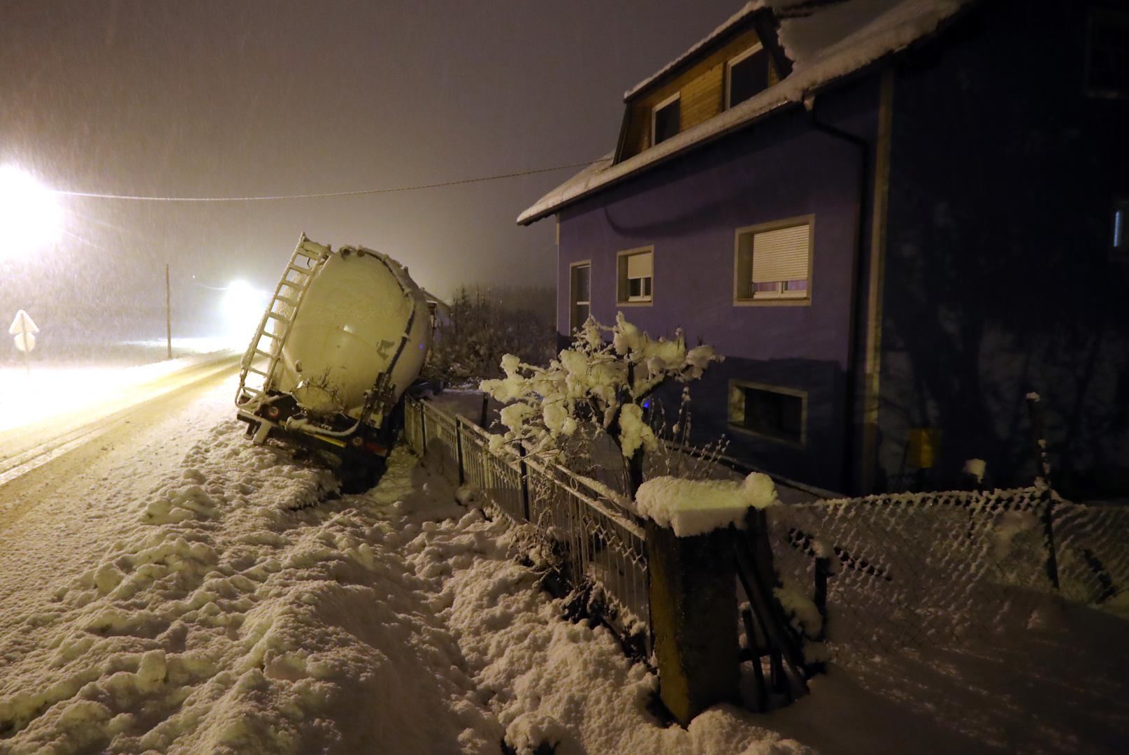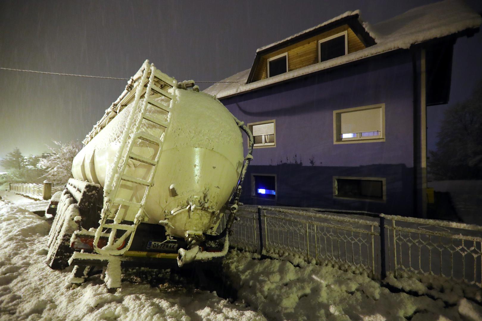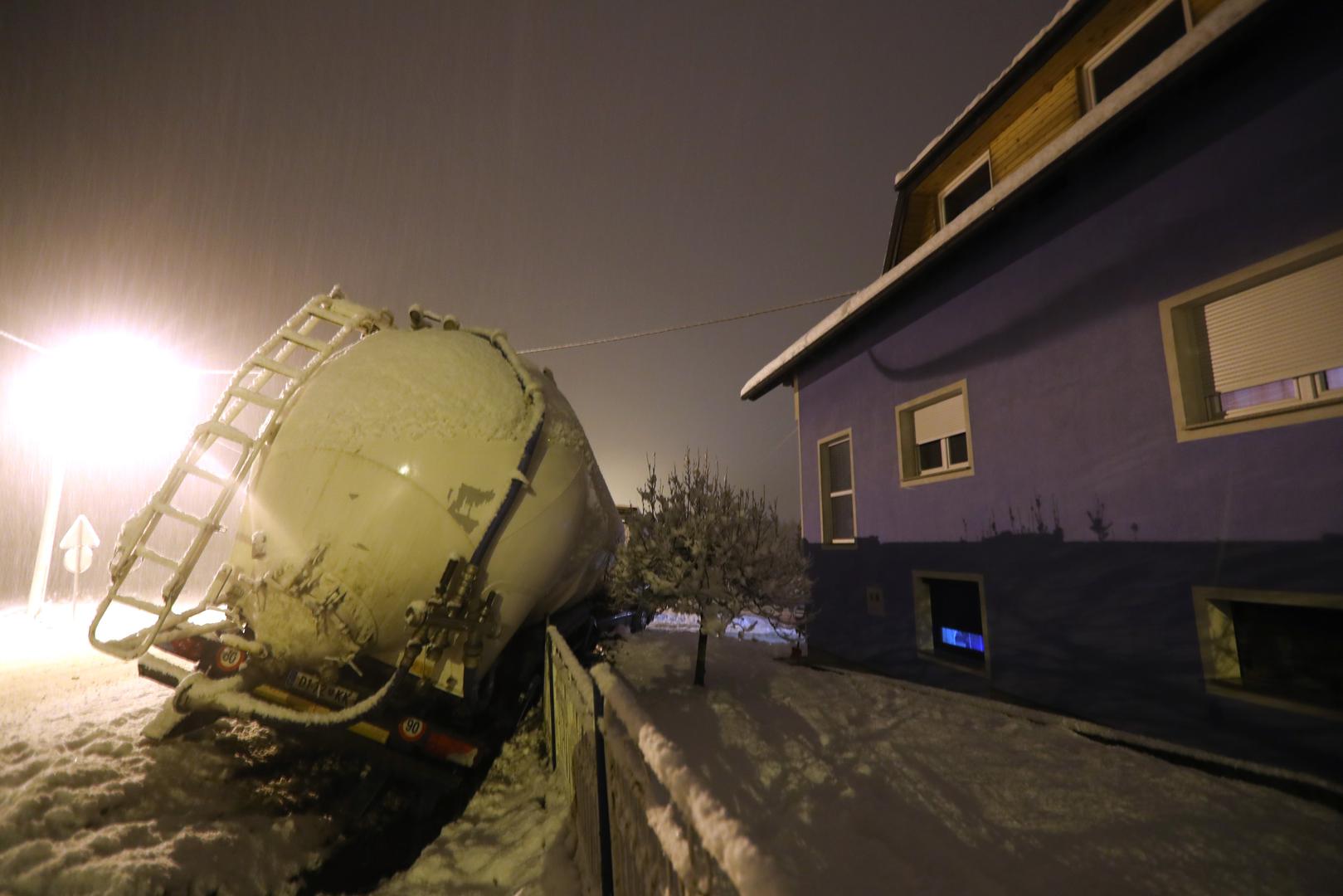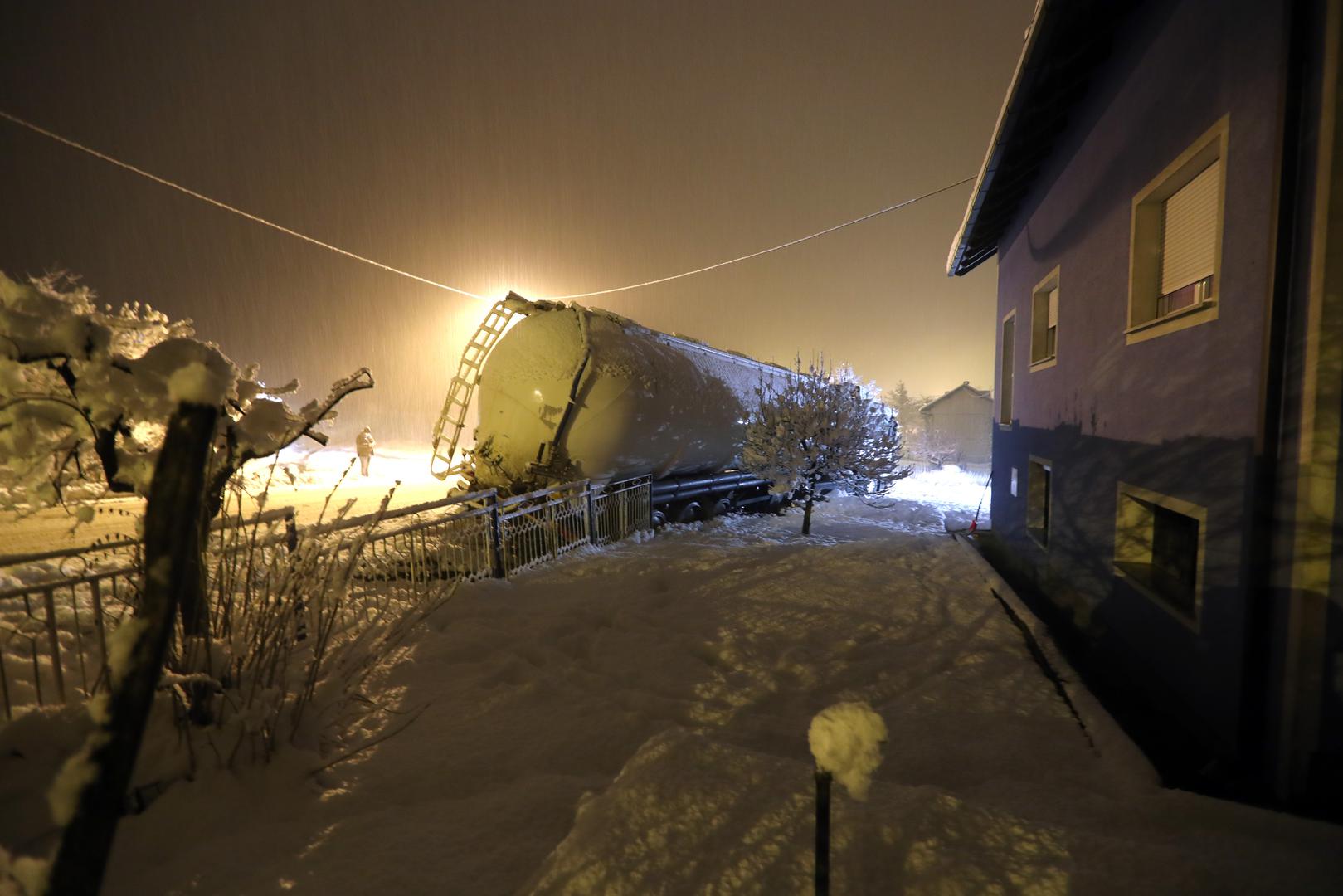 Cisterna je večeras kod Zaprešića zbog skliskog i mokrog kolnika izletjela s ceste i udarila u ogradu obiteljske kuće.