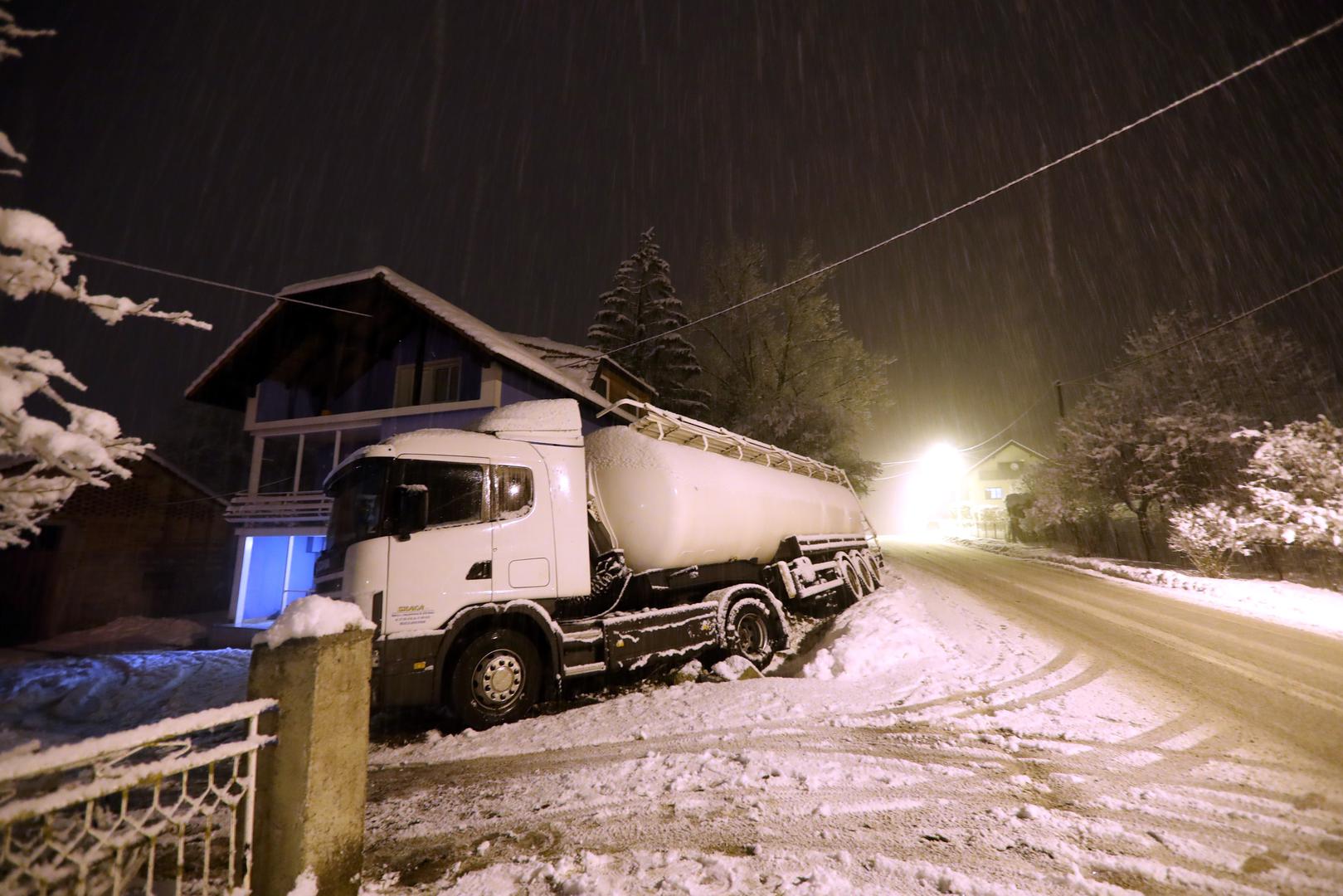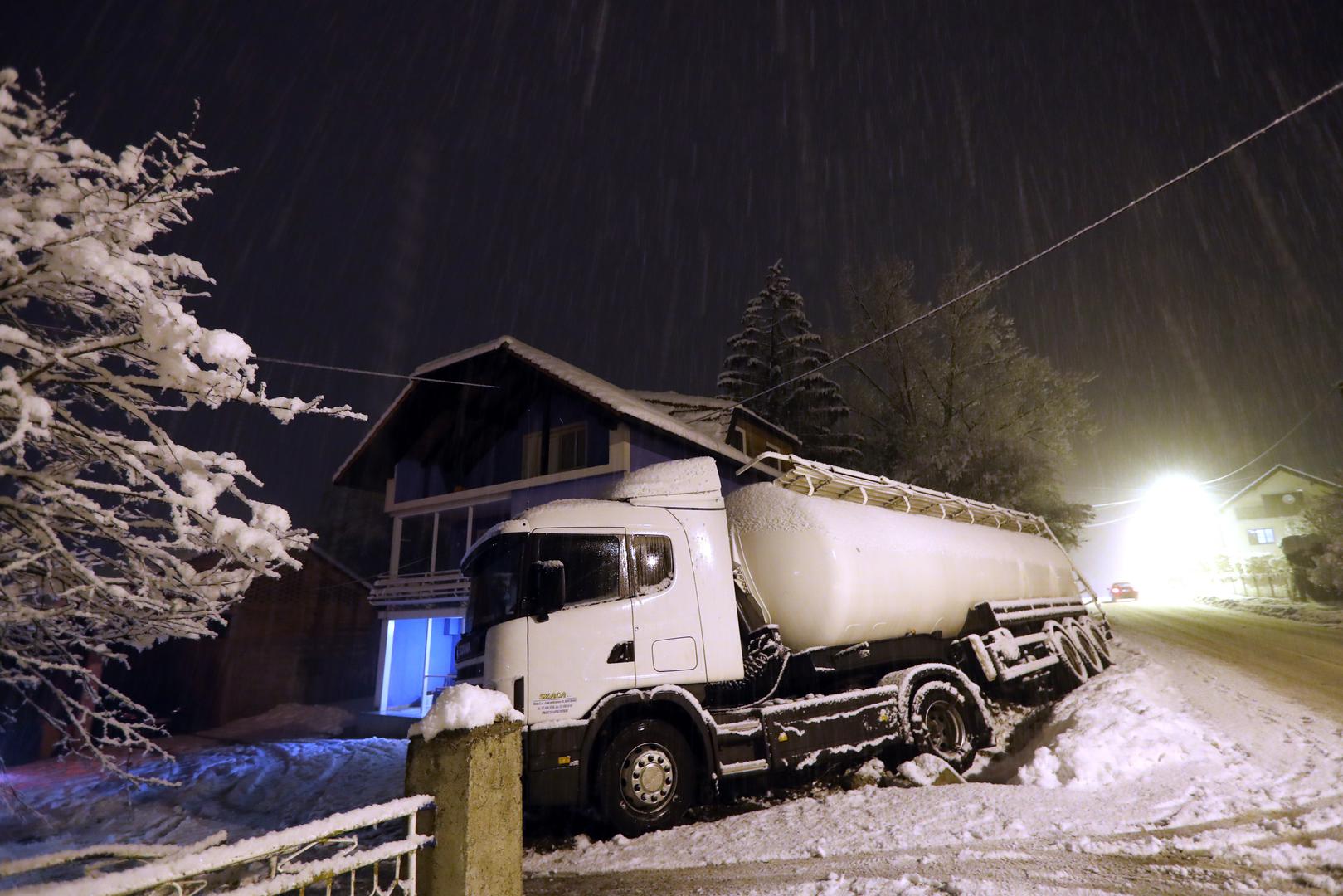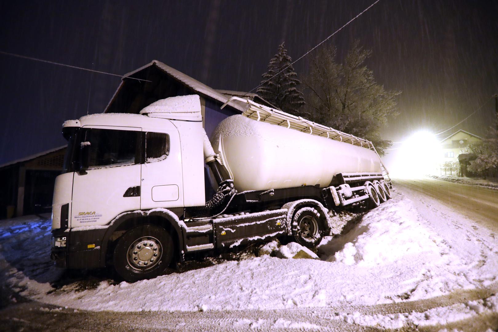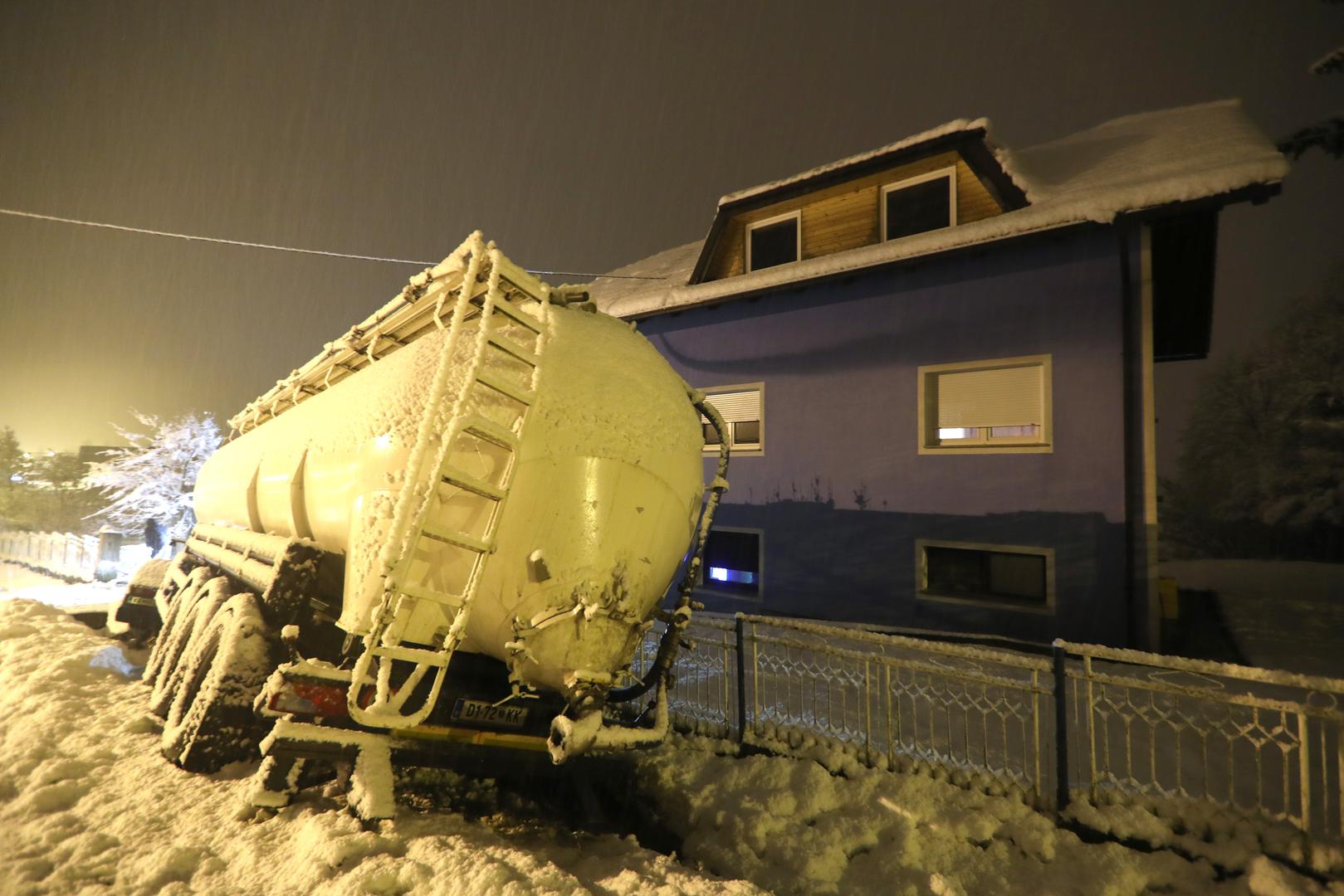 Cisterna je večeras kod Zaprešića zbog skliskog i mokrog kolnika izletjela s ceste i udarila u ogradu obiteljske kuće.