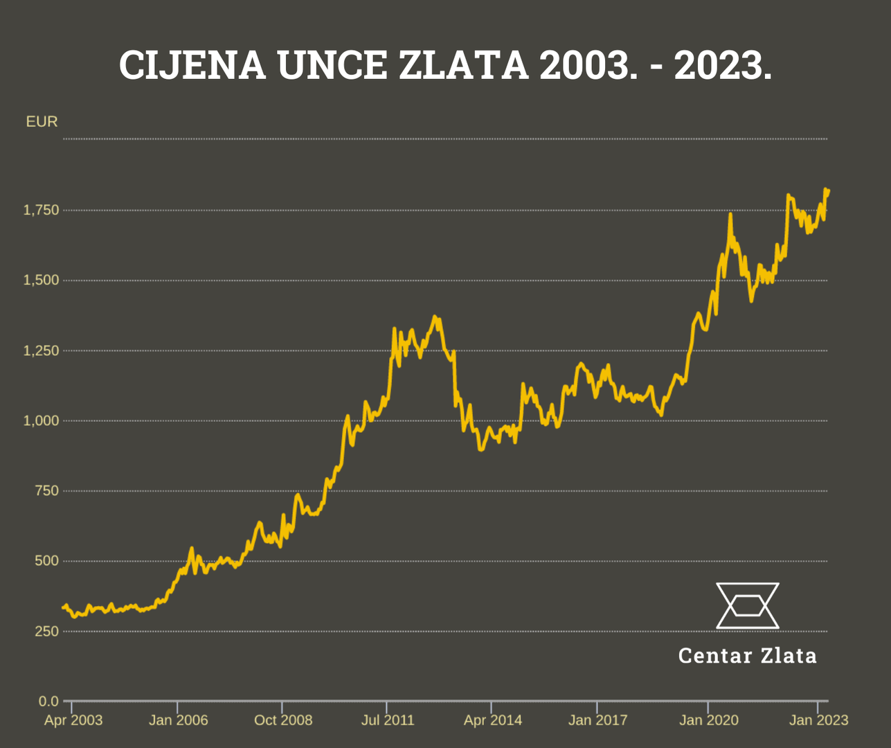 Cijena zlata u proteklih 20 godina višestruko je narasla