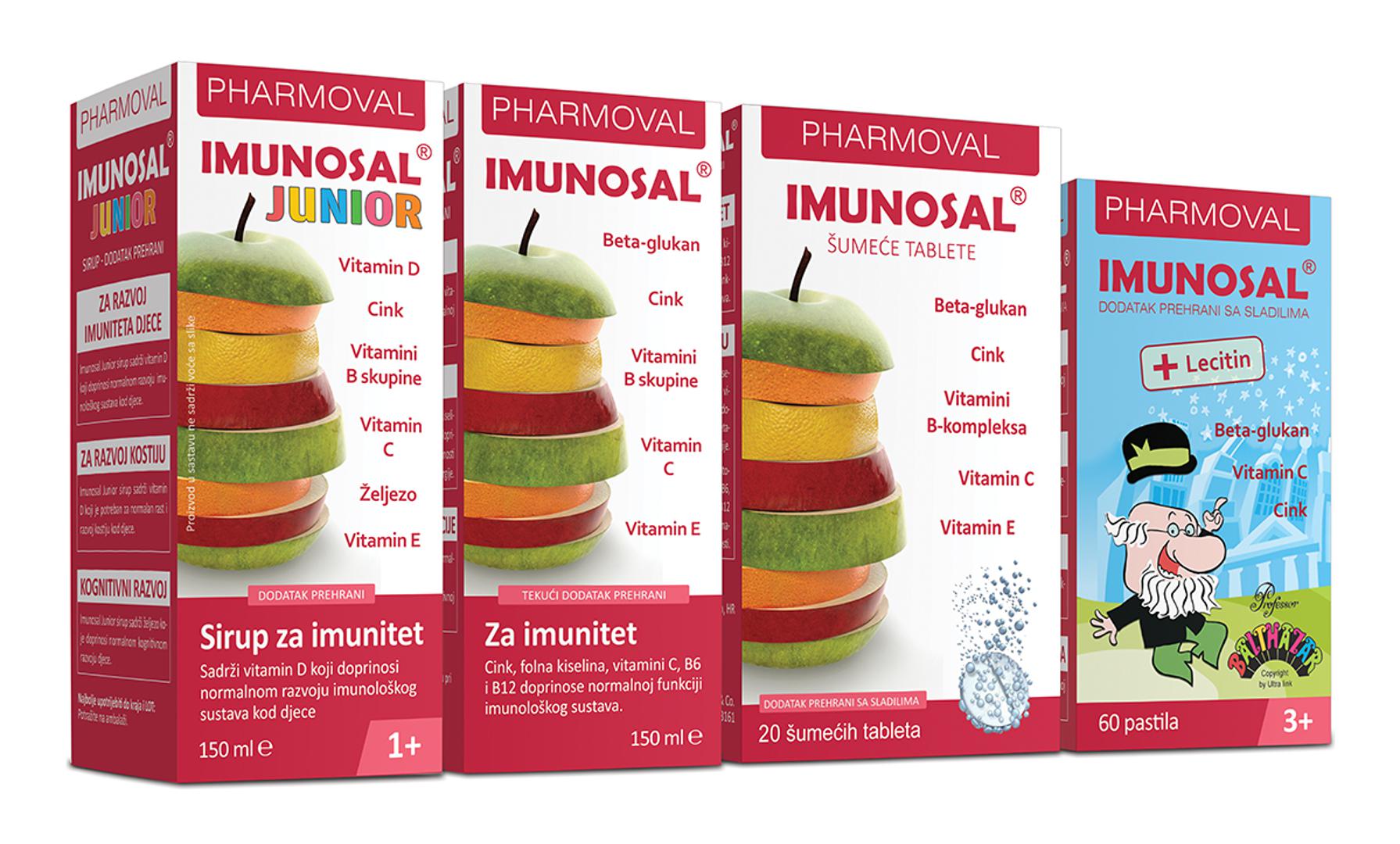 Imunosal proizvodi su dio provjerene Pharmoval linije dodataka prehrani. Svi Imunosal proizvodi napravljeni su u skladu s potrebama i dnevnim količinama posebno prilagođenim najmlađima. Proizvode možete potražiti u ljekarnama, specijaliziranim prodavaonicama ili na internet trgovini drogerija.hr s direktnom dostavom na vašu adresu.